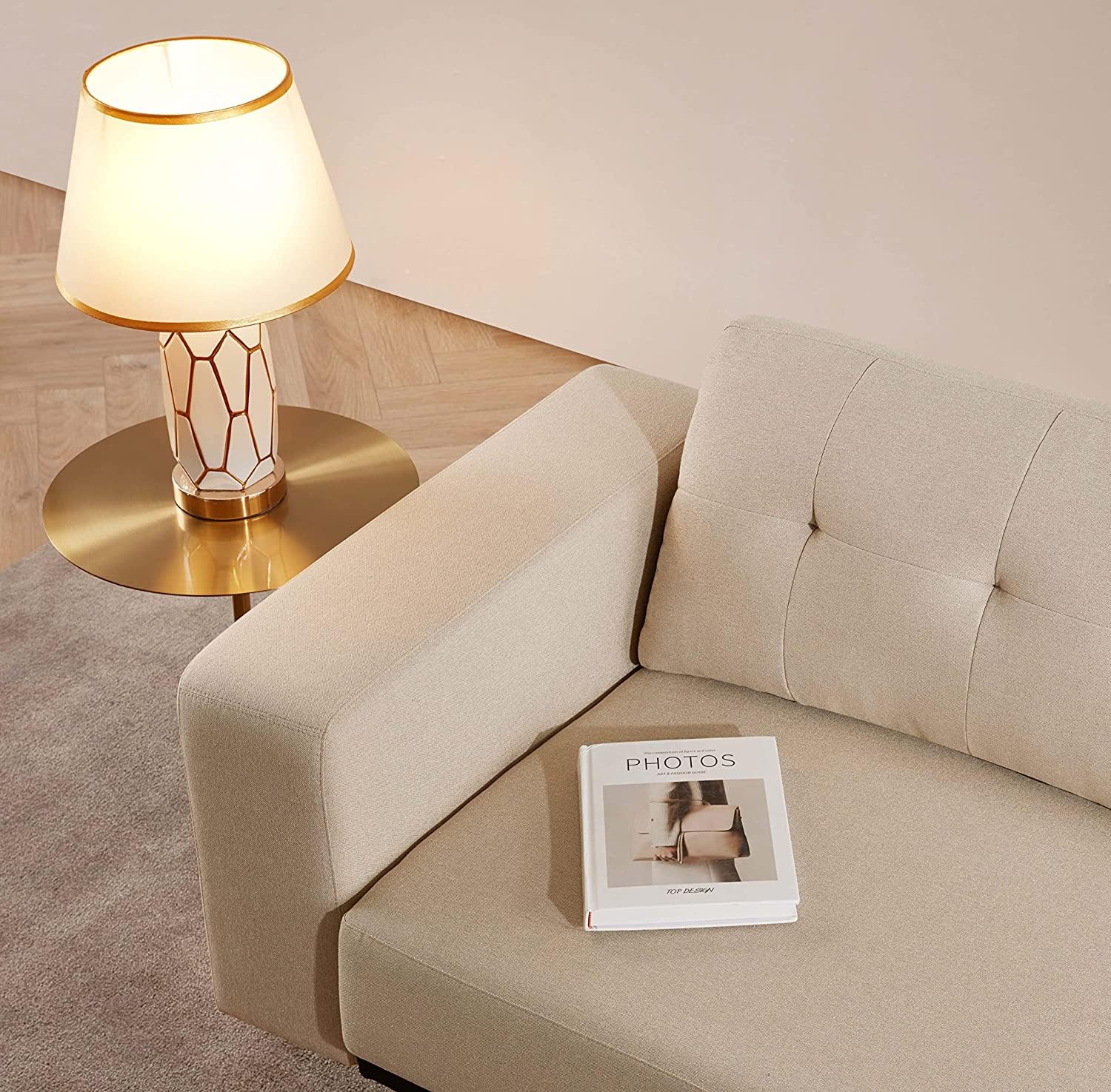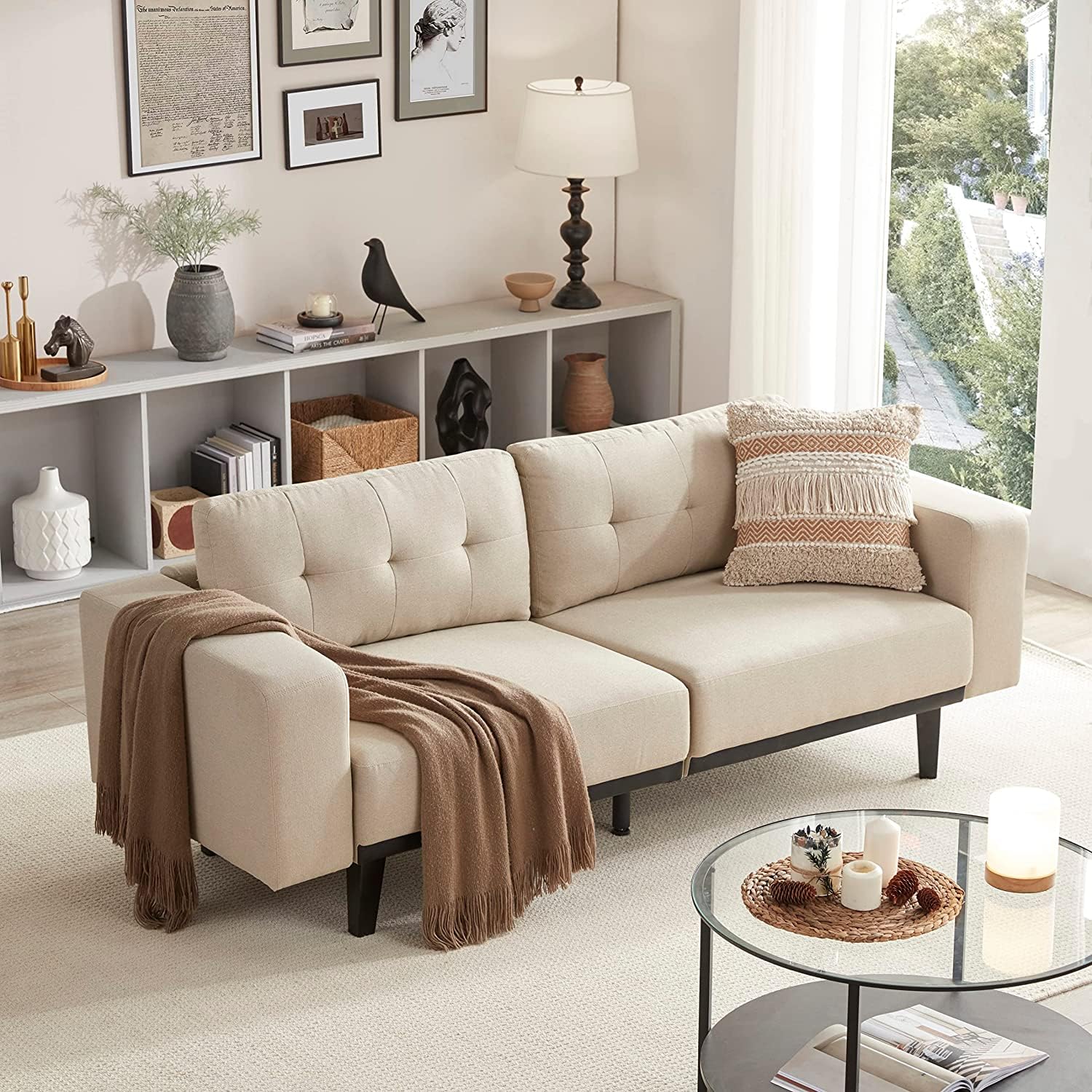 - STYLISH MODERN DESIGN: Are you still troubled by not being able to find right furniture that suits the design style you want? Please look here! Our living room couch has contemporary design. It can provide a high-end vibe to living. This delightful modern couch includes a lounge seat with cushions, track armrests, tapered legs, and 2 mid-century style sectional wide cushions. The mid century sofa is a suitable choice for office, bedroom, apartment and living room.