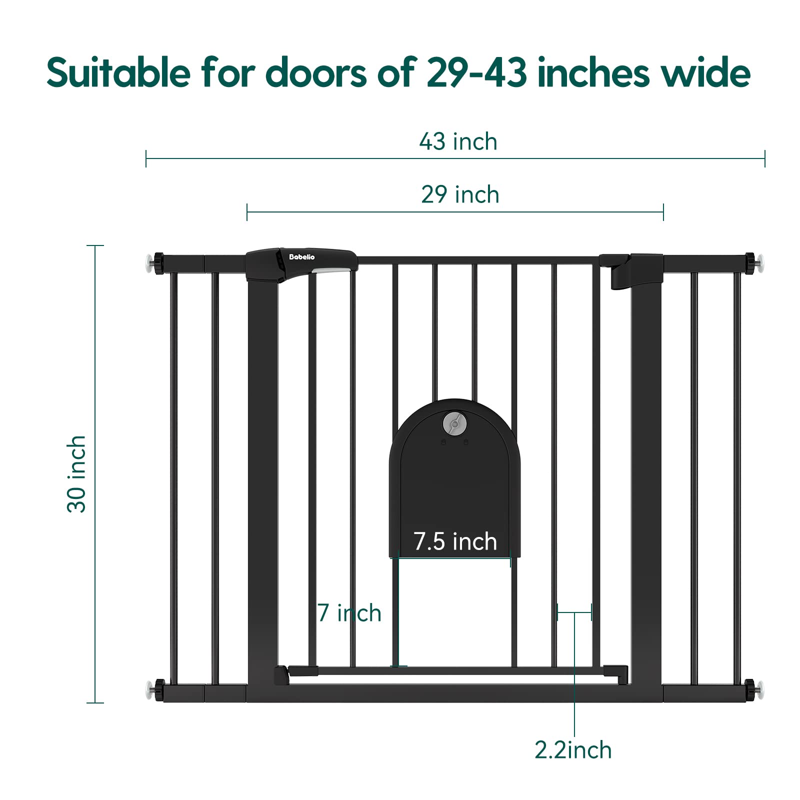 - METAL BABY GATE: Fits 29-43 inch openings, and the width of the pet gate can be adjusted with the included extensions, suitable for stairs, doorways, hallways. And 30 inch tall make it perfect for toddlers and medium pet.
