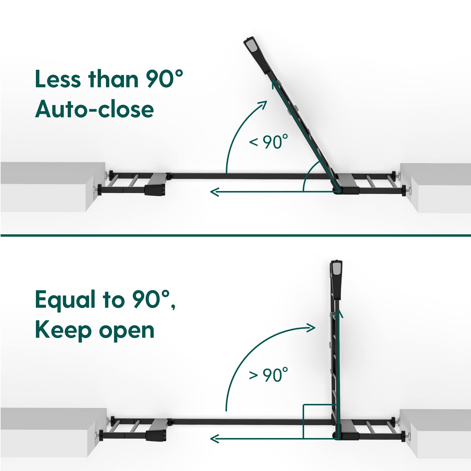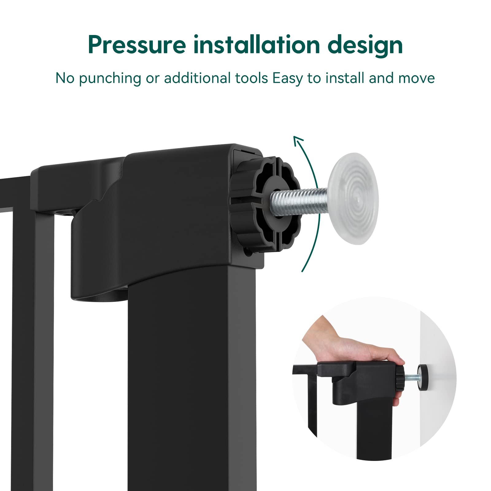 - EASY SET UP: Simple and quick pressure installation, not require additional tools and no holes in the wall. NOTE: Before installation there will be a gap between the gate latch and the frame which is NOT a defect and it is NOT bent. This gap will be eliminated once installed.