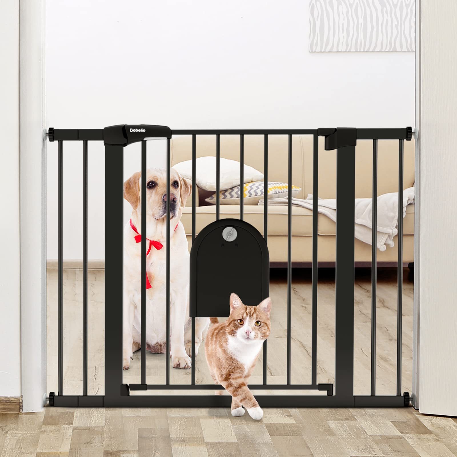 - SMALL PET DOOR: This pet gate has a one-handed walk-thru door and a small lockable pet door. Ideal for families with children and multiple pets. The small pet door can be adjusted up and down and locked, which is convenient and practical.