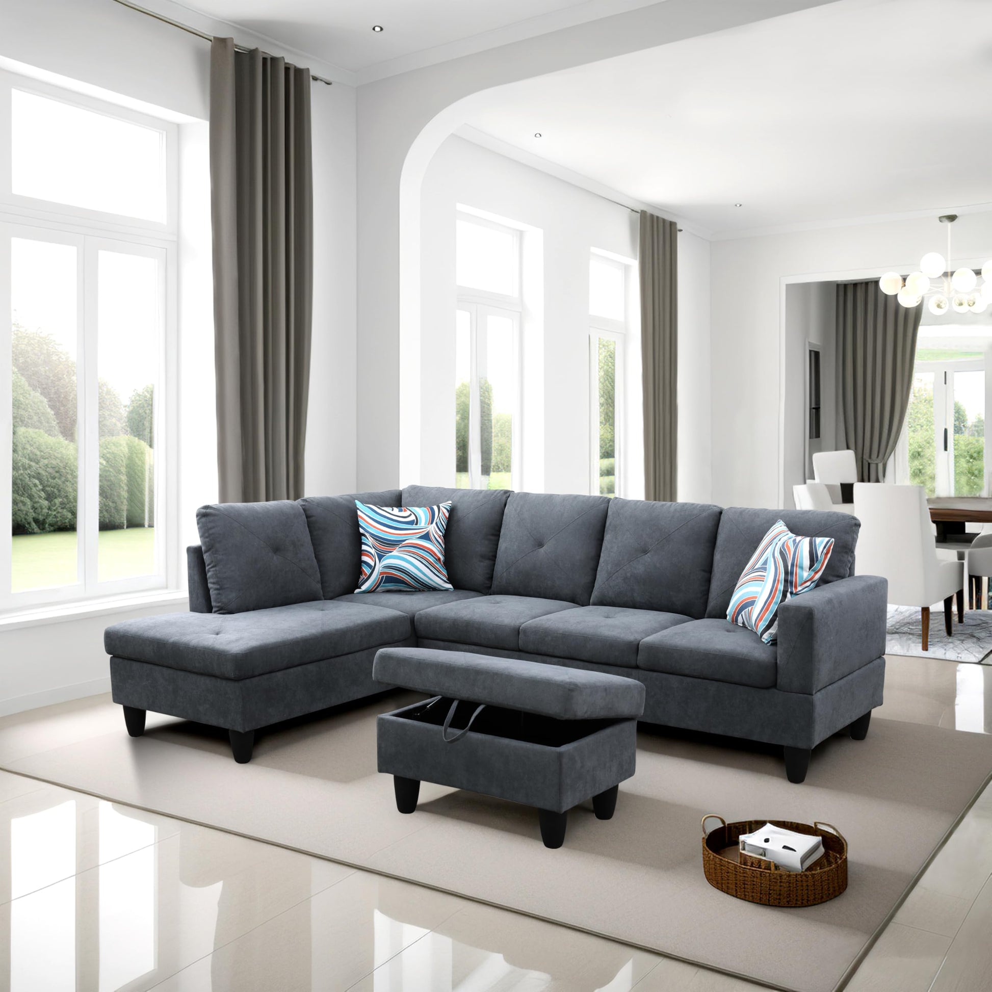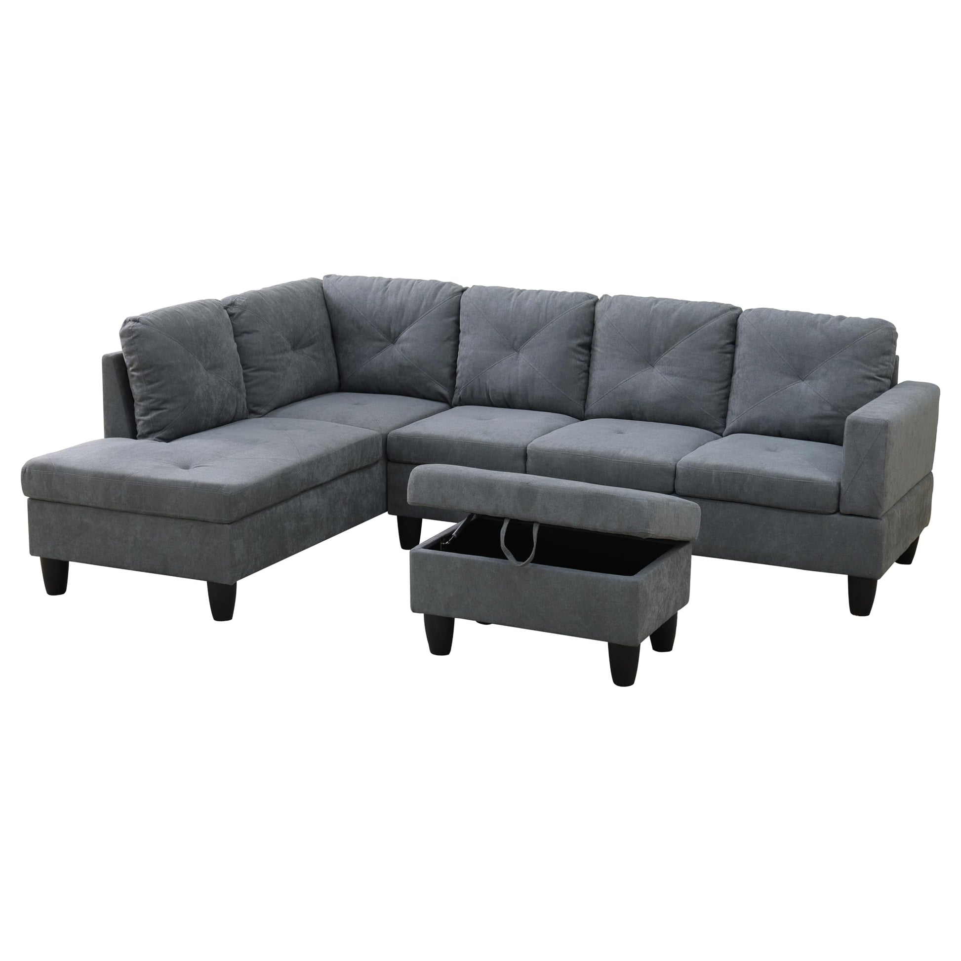 Linen L Shaped Sectional Couches with Storage Ottoman,3-Piece Living Room Sofa Set