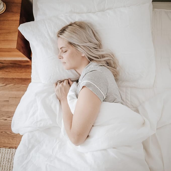 100% French Linen Duvet Cover for Weighted Blanket (White - 42"x72" - Throw Size)
