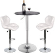 - Bar Table Set 3 Piece---One modern round bar table white with 2 pieces barstools Black Table and Grey Stools