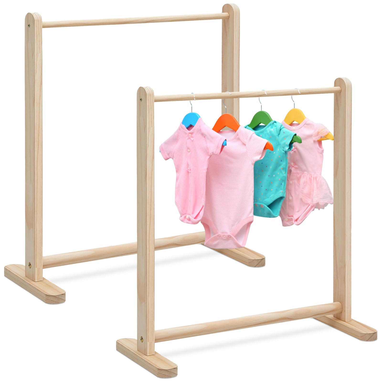 - Quality Material: crafted with pine wood, our kids costume rack boasts a strength that offers robustness and longevity; The wood color finish gives it a rustic, classic appeal that easily blends with your room decor