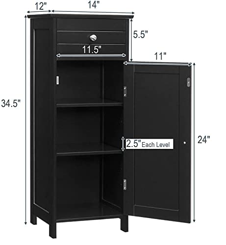 Bathroom Floor Storage Cabinet, 14" x 12" x 34.5" (L x W x H), Black