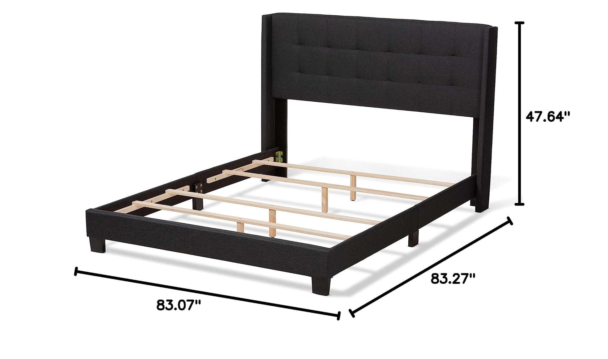 Baxton Studio Beds (Box Spring Required), King, Charcoal Grey