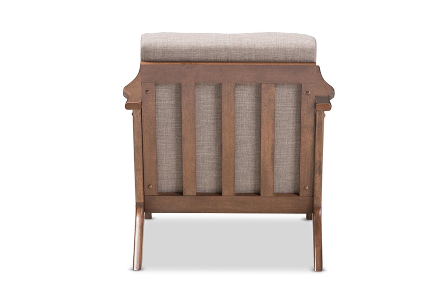 Bianca Mid-Century Modern Walnut Wood Light Grey Fabric Tufted Lounge Chair