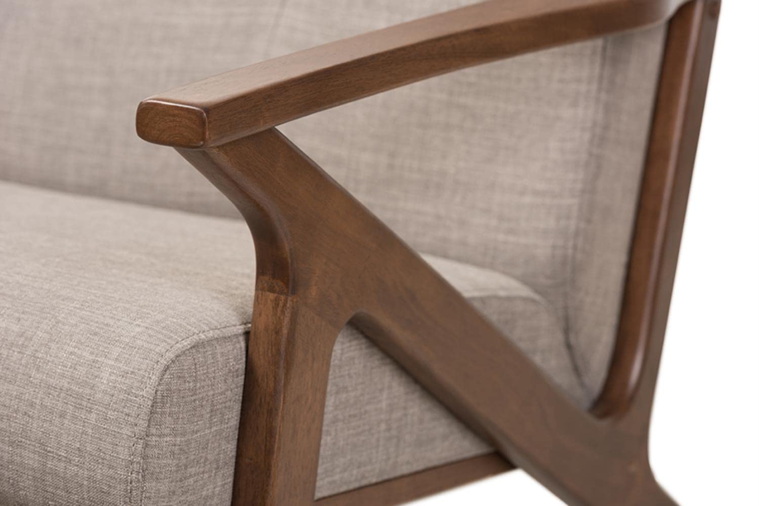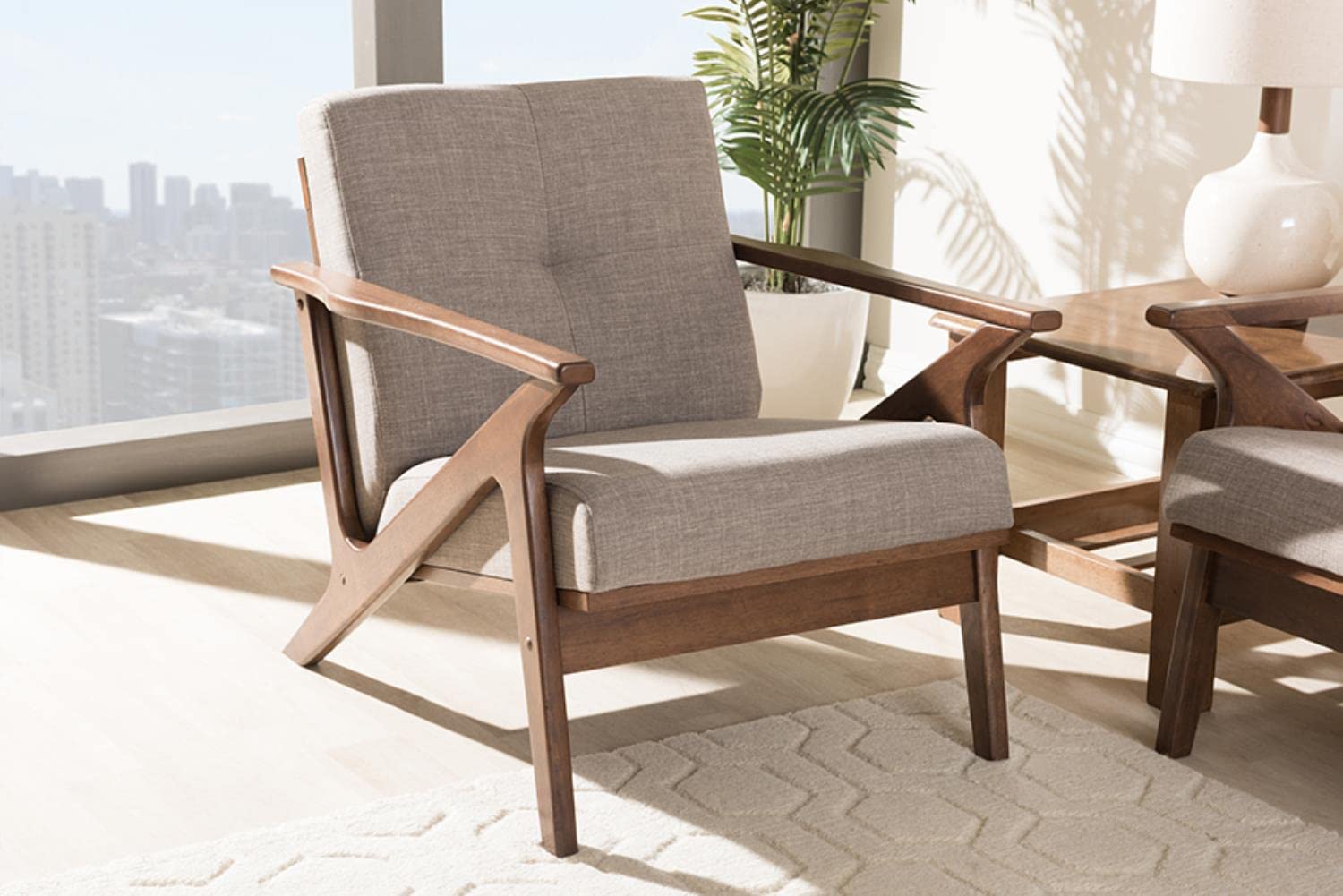 - Welcome plush comfort into your home with the vintage style-lines and tufted detail of the Bianca 1-seater lounge chair. Constructed of durable rubberwood for exceptional durability and stable comfort, the Bianca is upholstered in cool light grey polyester fabric to give it an updated look. Perfect for a modern or minimal interior, the Bianca features smooth angular solid wood frame in dark walnut finishing for a nod to mid-century modern design that exudes warmth