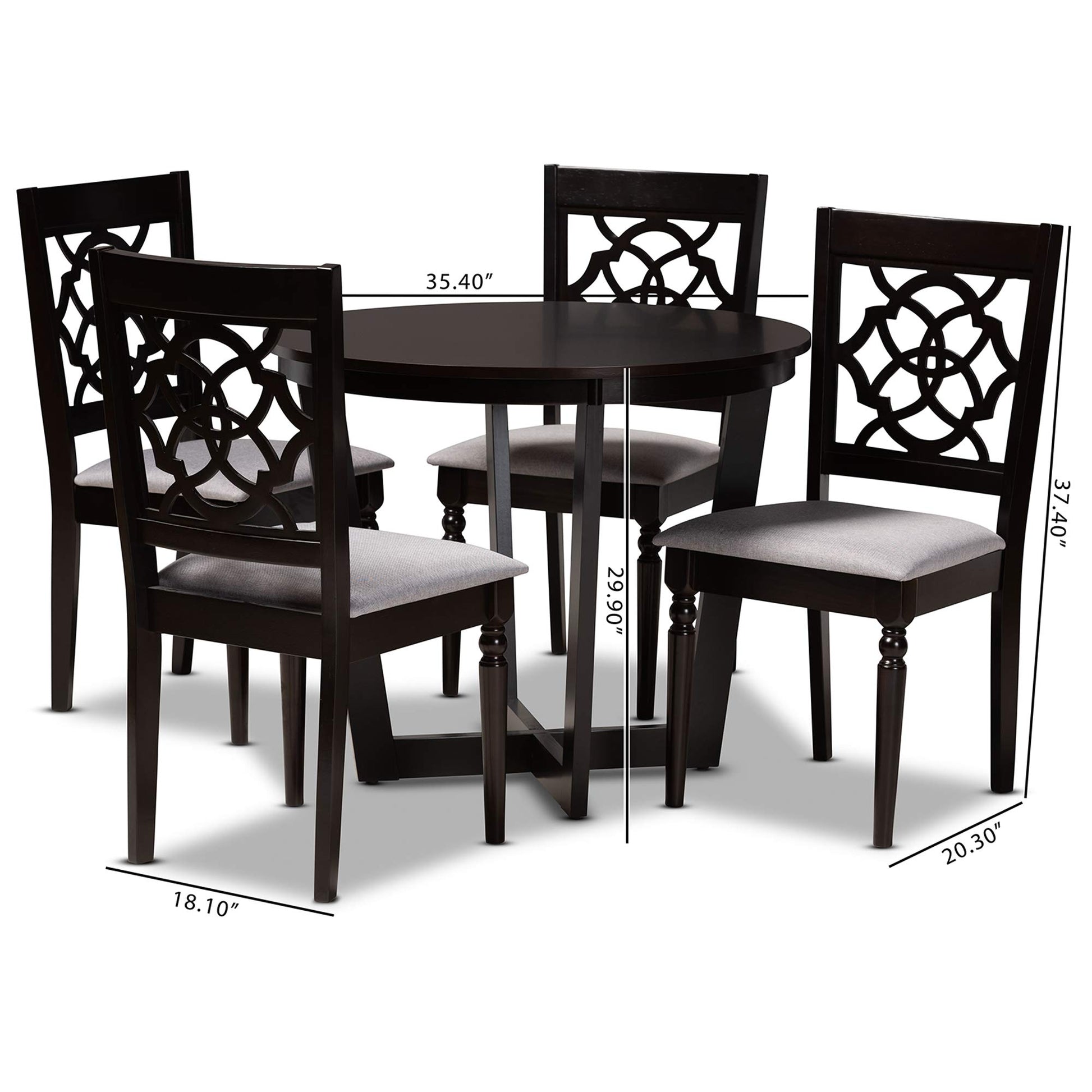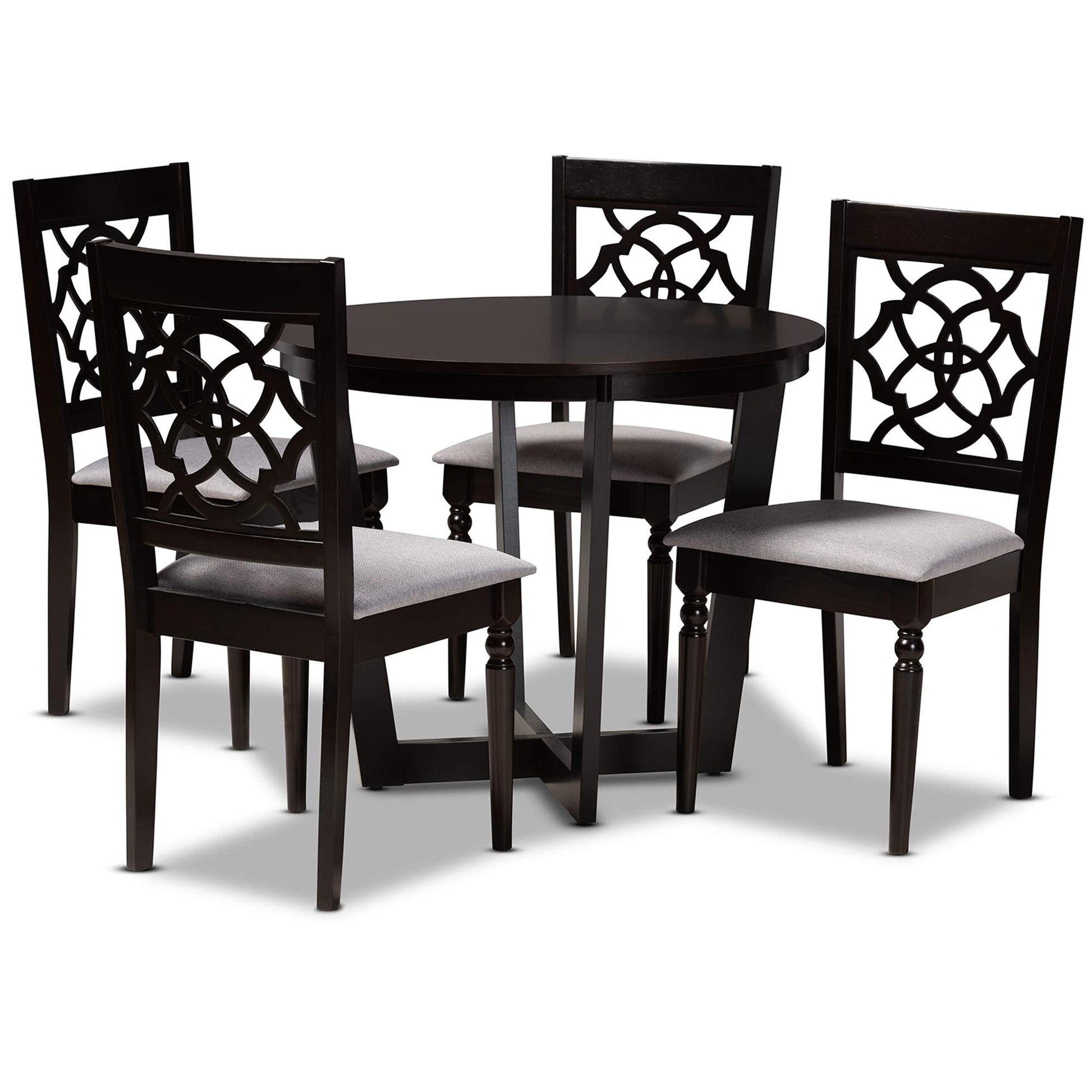 - Modern dining set includes four (4) chairs and one (1) table