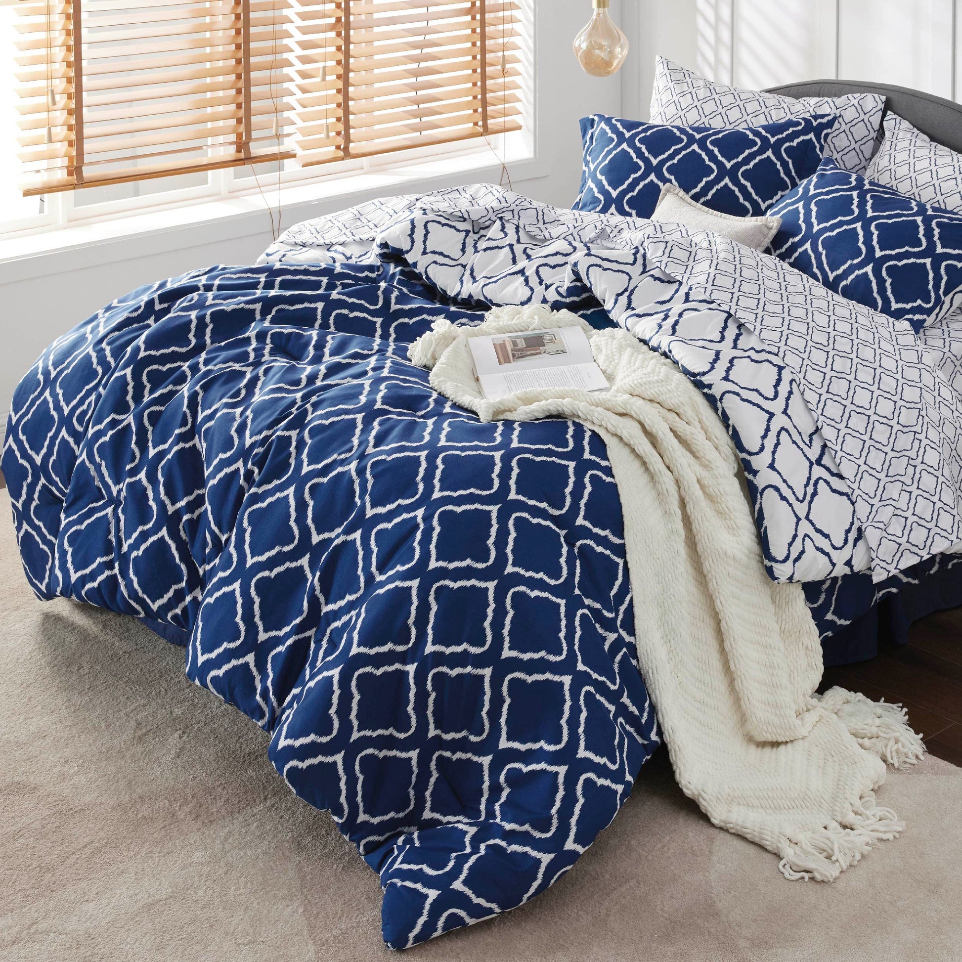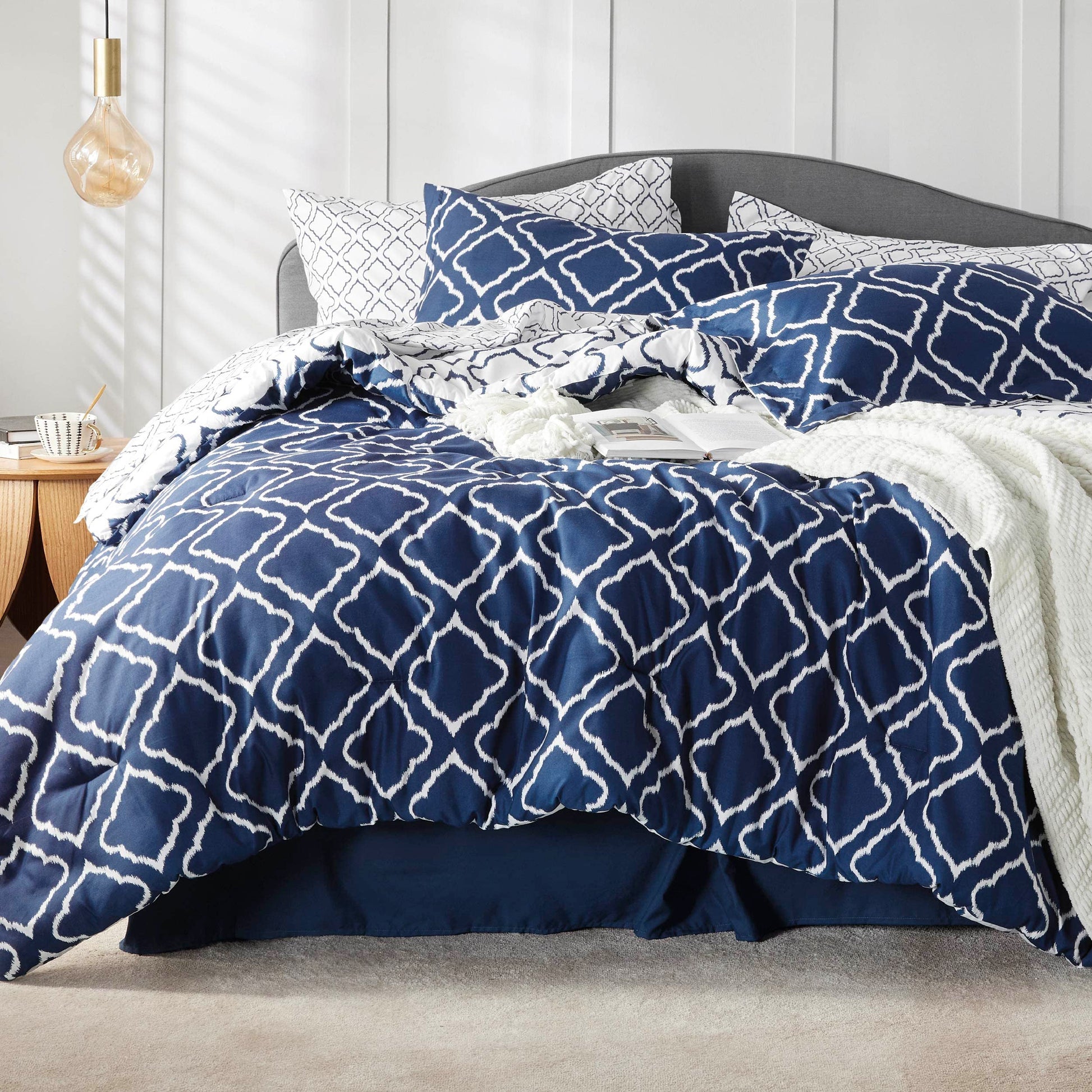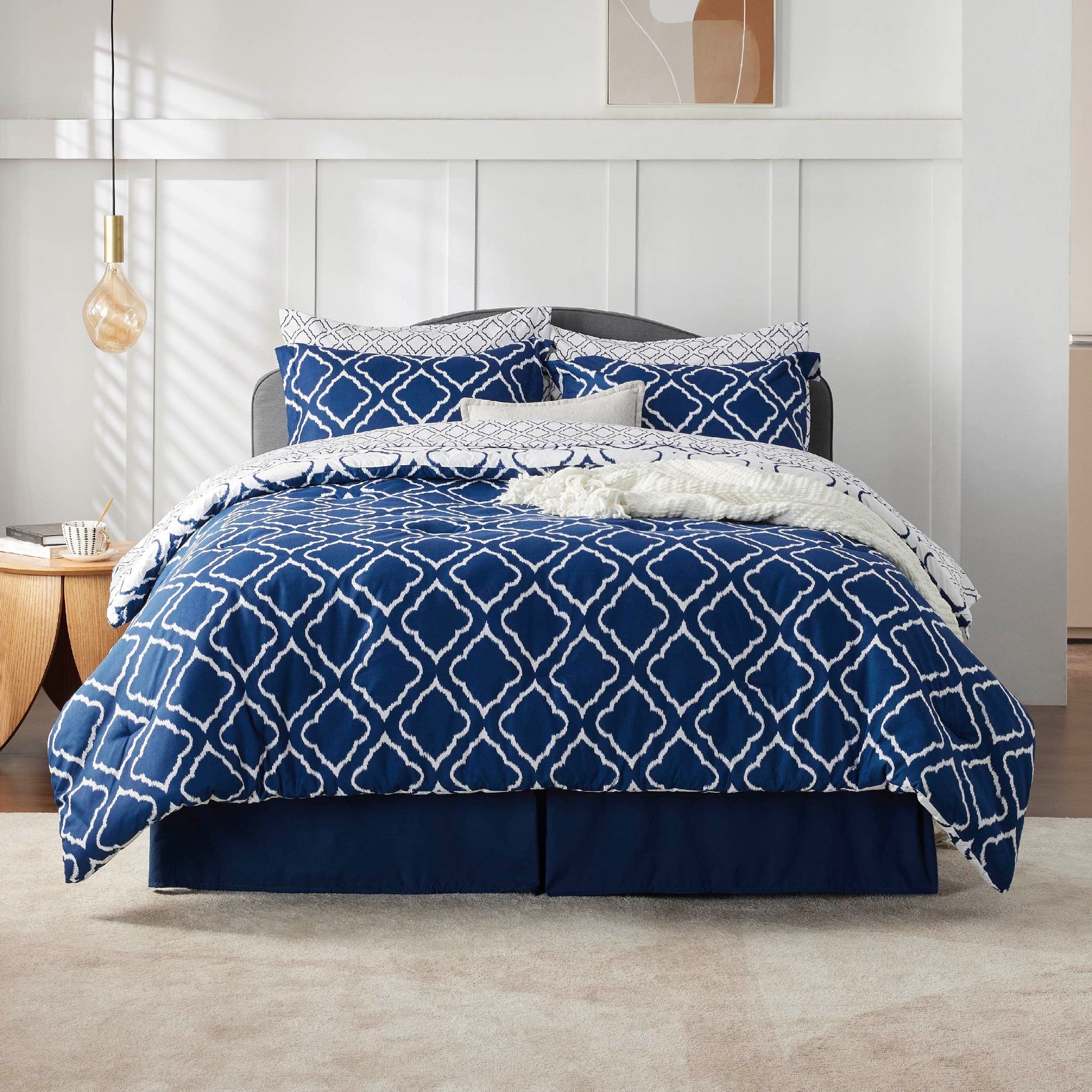Size Queen Included Components 2 Pillow Shams (20" x 26"), 1 Flat sheet (90" x 102"), 1 Fitted sheet (60" x 80" + 14"), 1 Comforter (88" x 88") Color 01 - Navy Age Range (Description) All Ages Style Modern