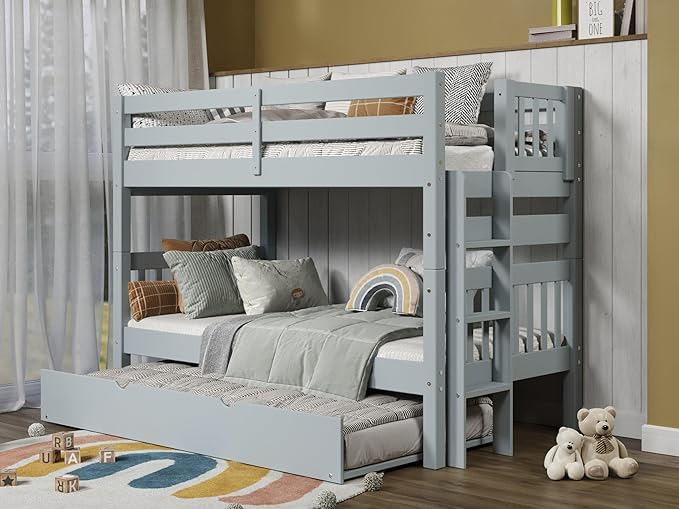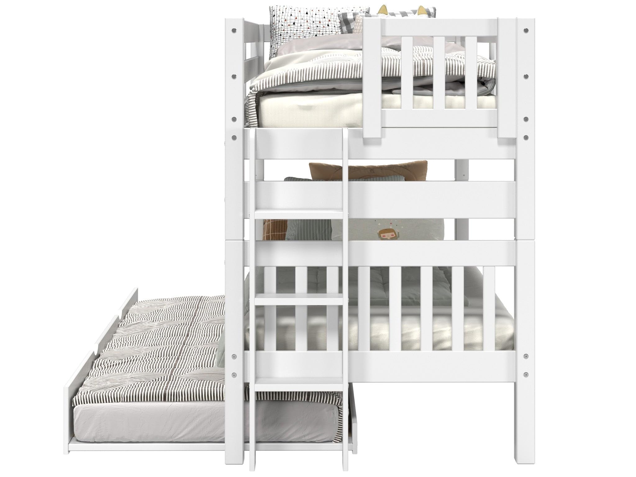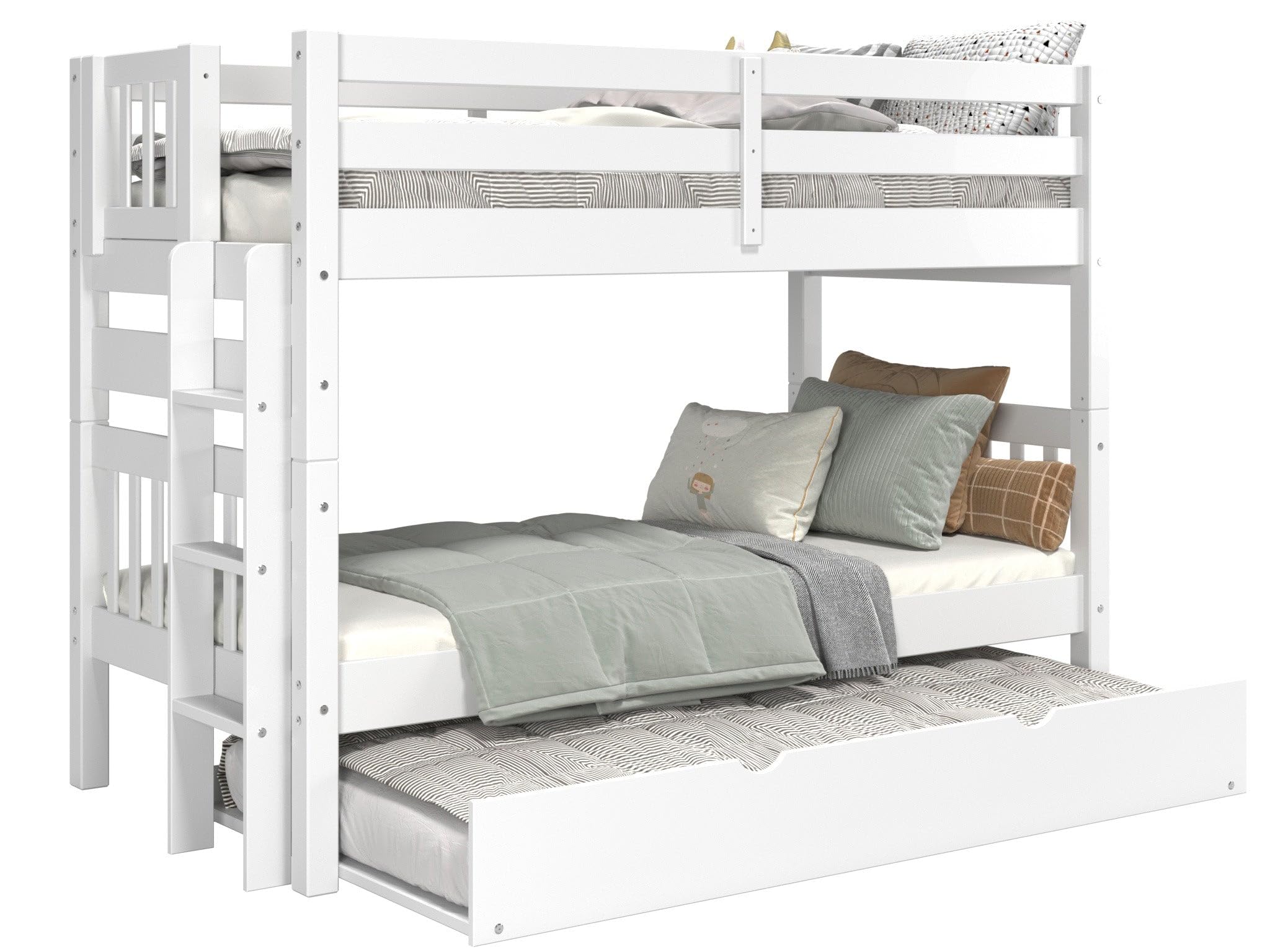 Twin over Twin Mission Style with End Ladder and a Twin Trundle, White