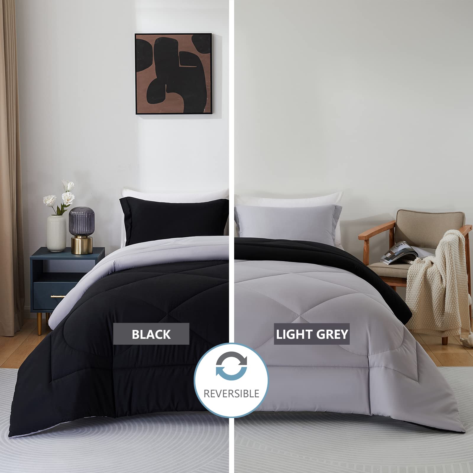 - COZY MATERIAL - comforter set is made of high-quality microfiber polyester and is filled with soft microfiber, making the quilt lightweight, soft, breathable and skin-friendly. The down alternative comforter set is suitable for all seasons and provides a warm and comfortable sleeping environment for you to sleep soundly through the night