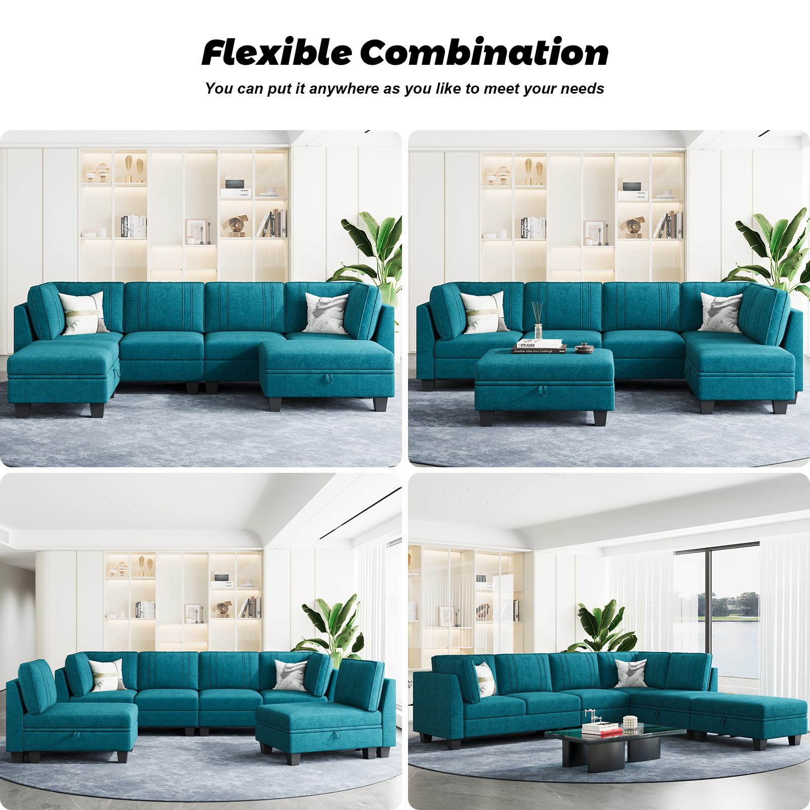 - EXQUISITE DESIGNED: L shaped sectional sofa chaise can be placed for left chaising or right chaising, you can just switch the chaise with connectors to the other side and also has ample storage space as an ottoman. You can easily storage your pillows, throws and toys under