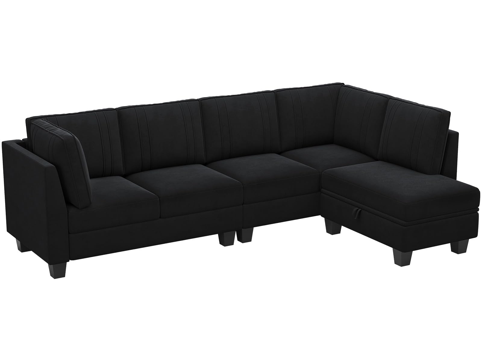 - EXQUISITE DESIGNED: L shaped sectional sofa chaise can be placed for left chaising or right chaising, you can just switch the chaise with connectors to the other side and also has ample storage space as an ottoman. You can easily storage your pillows, throws and toys under