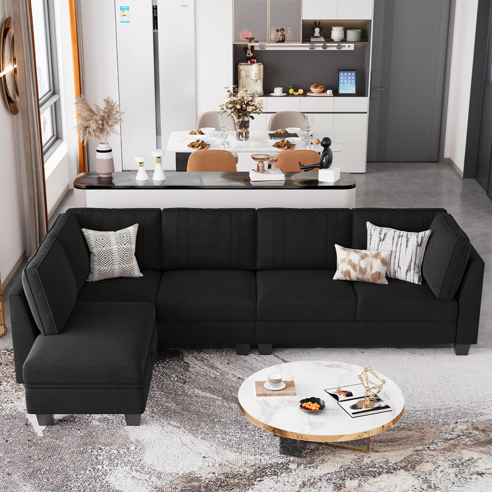 - PREMIUM FABRIC: The sectional couch is made of nice premium velvet, which is soft, durable and pet-friendly. Easy cleaning with a damp cloth. Velvet will give the sofa shiny looking under the light, very elegant choice for sectionals