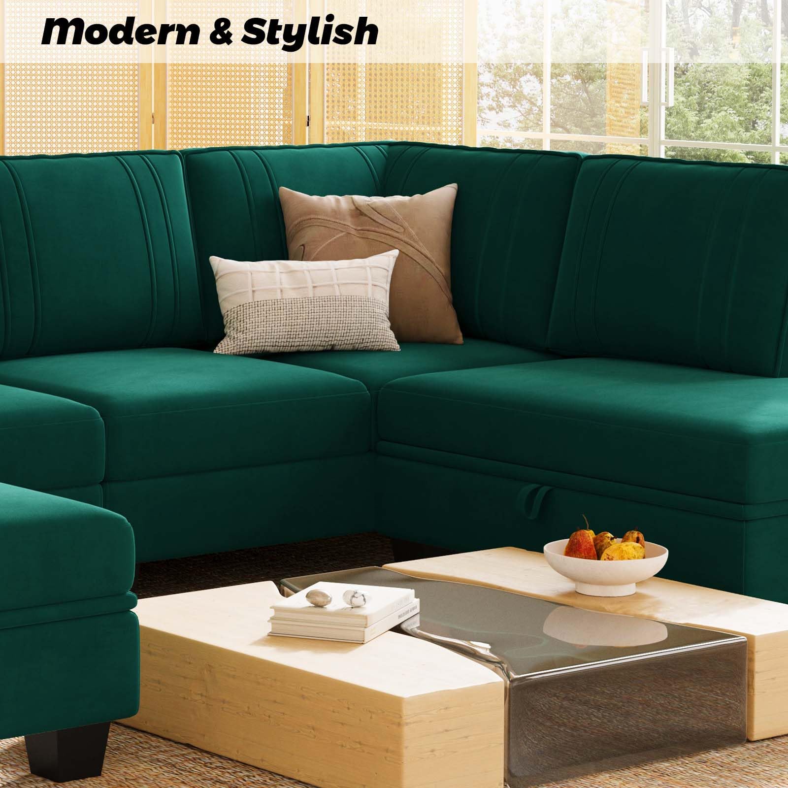 - EXQUISITE DESIGNED: L shaped sectional sofa chaise can be placed for left chaising or right chaising, you can just switch the chaise with connectors to the other side and also has ample storage space as an ottoman. You can easily storage your pillows, throws and toys under