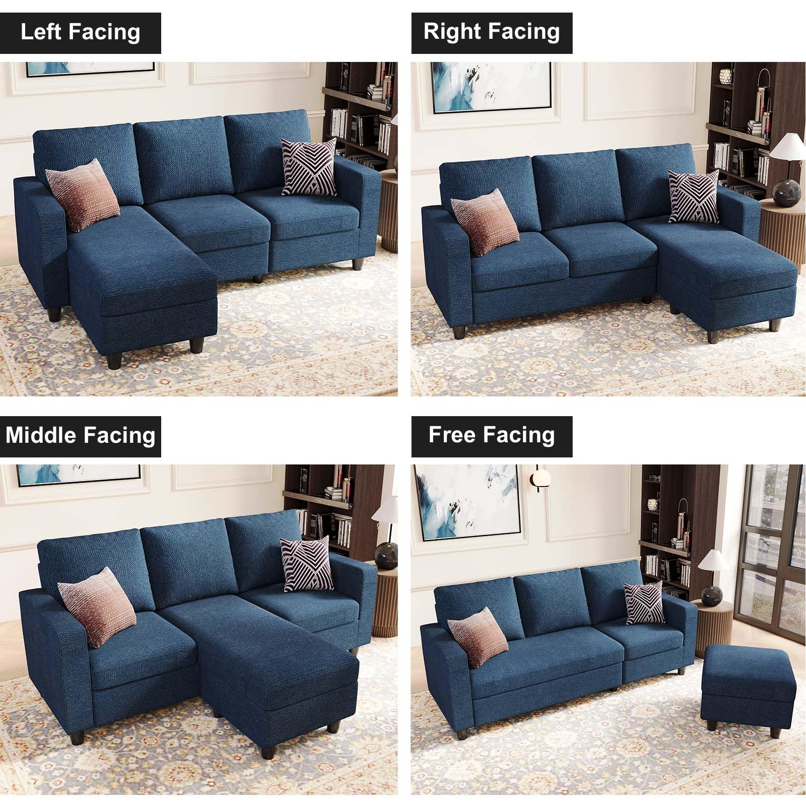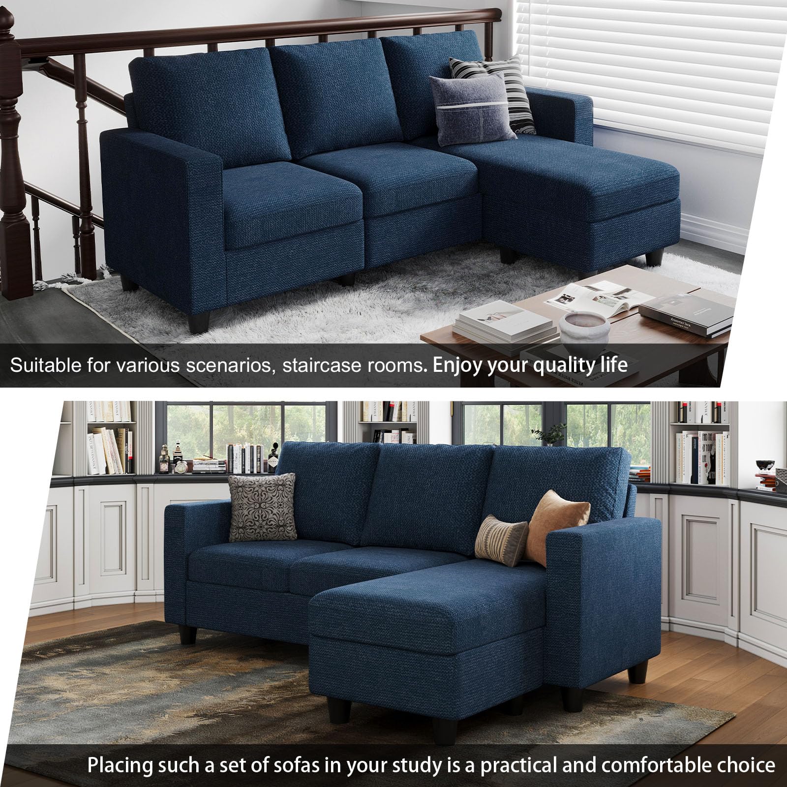 - Comfortable & Soft Sofa: The sectional L-shaped sofa couch's seat cushions are composed of high-resilience foam, which offers higher resilience and softness. The back cushions of a modular sectional sofa are 100% filled with fine cotton, which is fluffy and soft and offers the ideal level of softness. The seats have comfortable yet sturdy cushions. You won't ever have to be concerned about sinking in