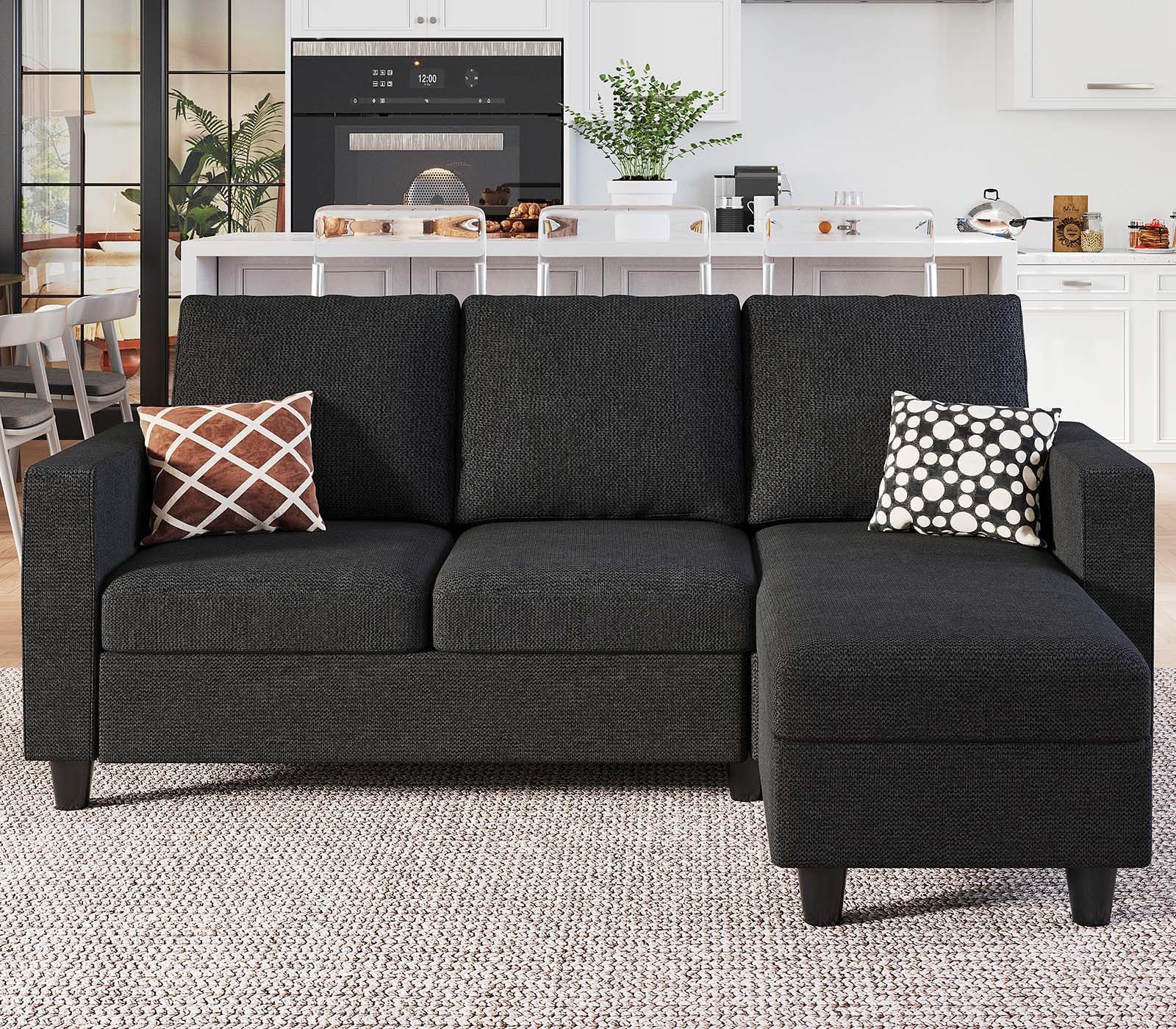 - Easy Assembly and Transport: The L shaped sectional couch comes in 2 boxes, easy to disassemble and carry if you would move to a new apartment. No extra tools are needed and easy-to-follow instructions to assemble. You can assemble the sofa easily within 20 minutes