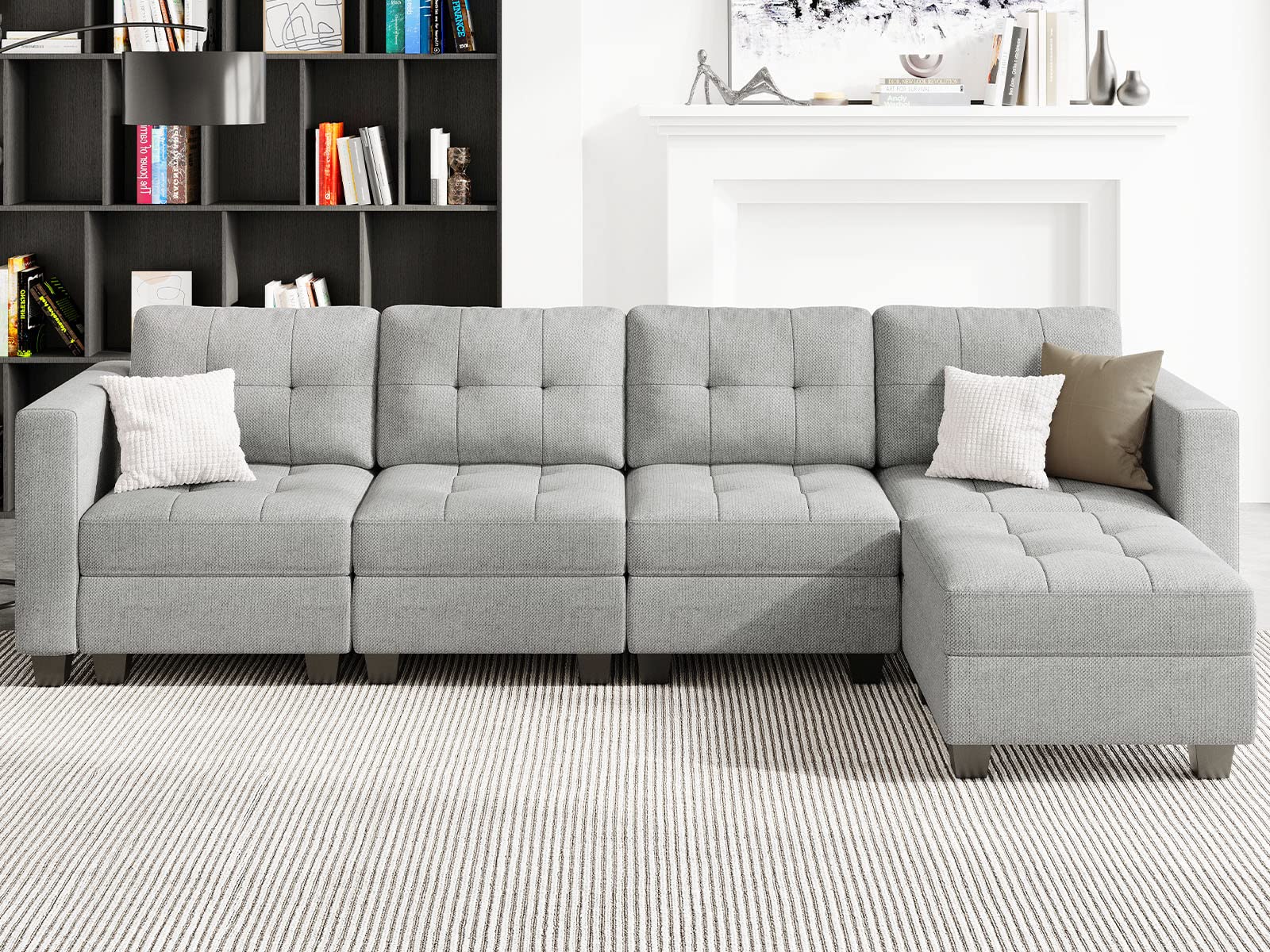 Light Grey L Shape 5-Seat Modular Sectional Sofa with Storage