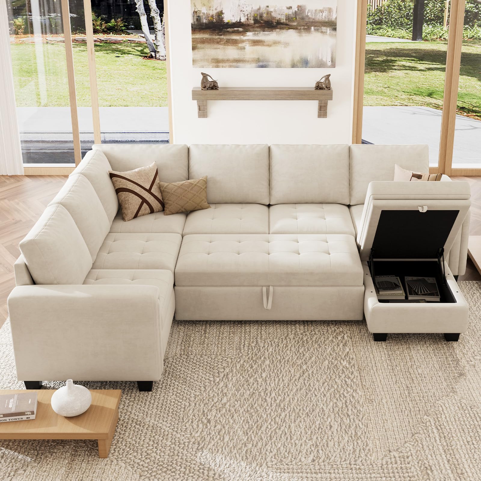 - Versatile Pull-Out Sleeper Sectional The innovative 'pull out sleeper sectional module' transforms the modular u shaped sofa from a daily seating area into a comfortable bed for guests or an ideal spot for movie nights. This dual functionality makes it a space-saving and practical addition to any home.