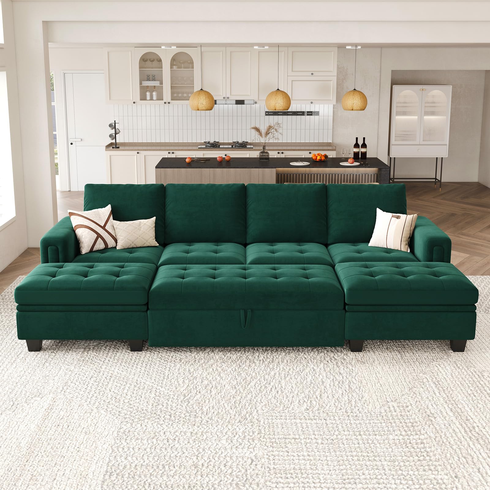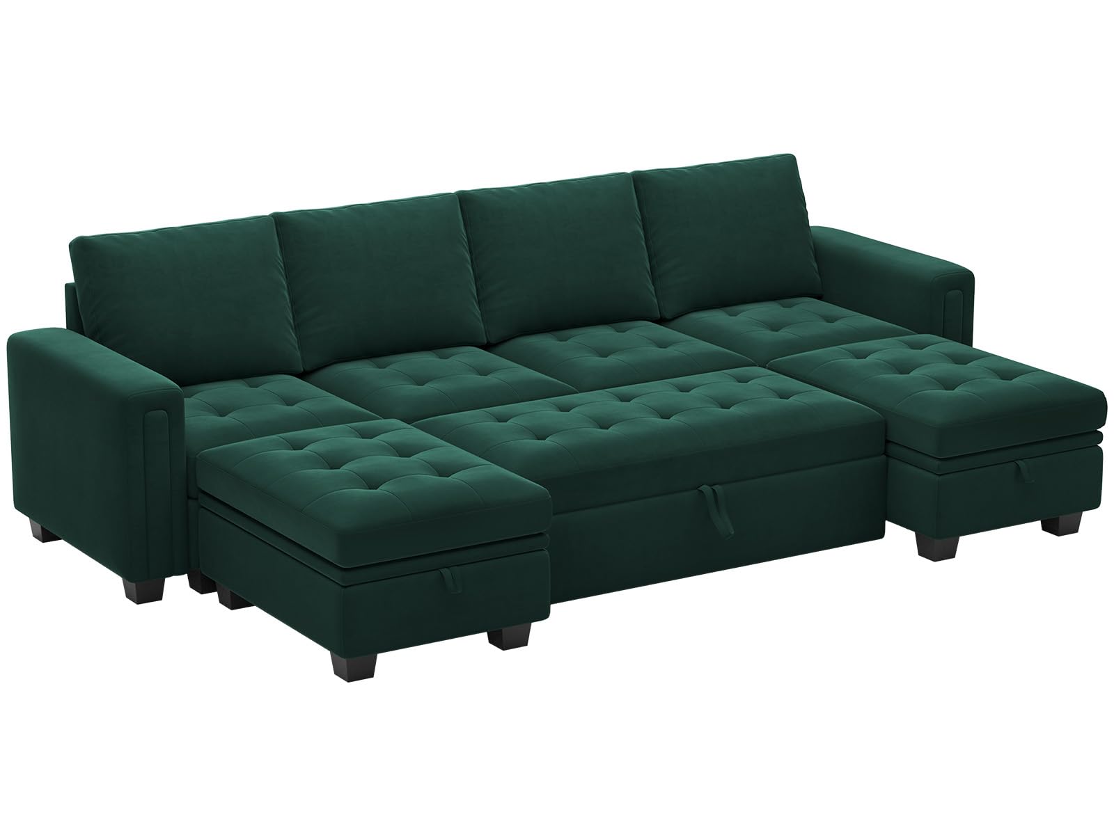 Modular Sectional Sleeper Sofa with Pull Out Bed Velvet Convertible U Shaped Sectional