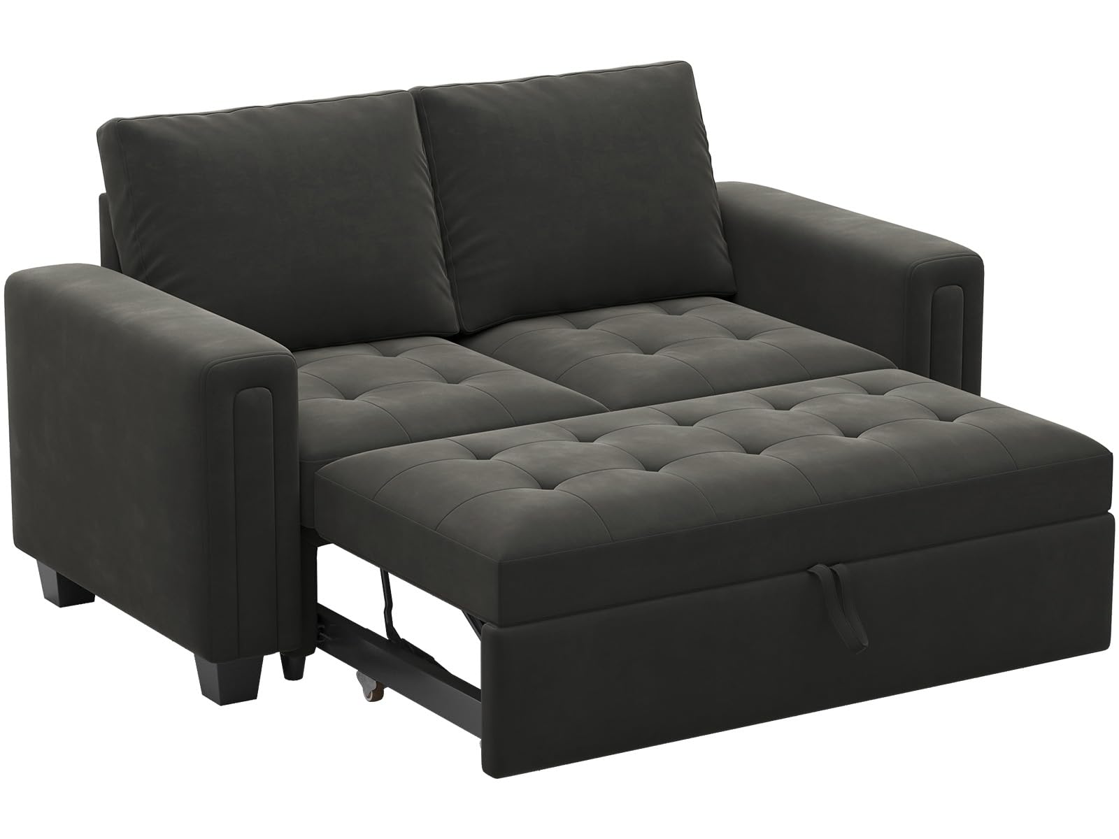 Belffin Modular Sectional Sleeper Sofa with Pull Out Couch Bed Modular Sleeper Loveseat Sectional Sofa Velvet Fabric for Living Room Apartment Grey