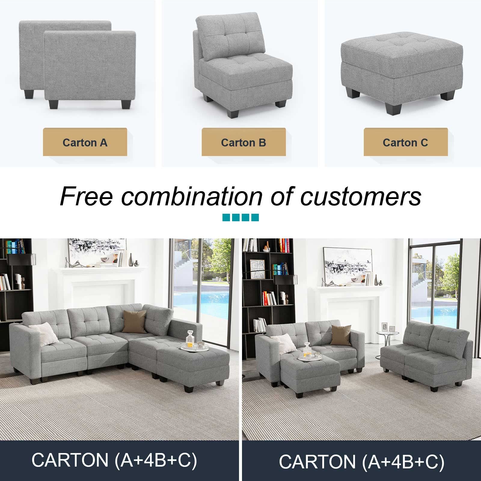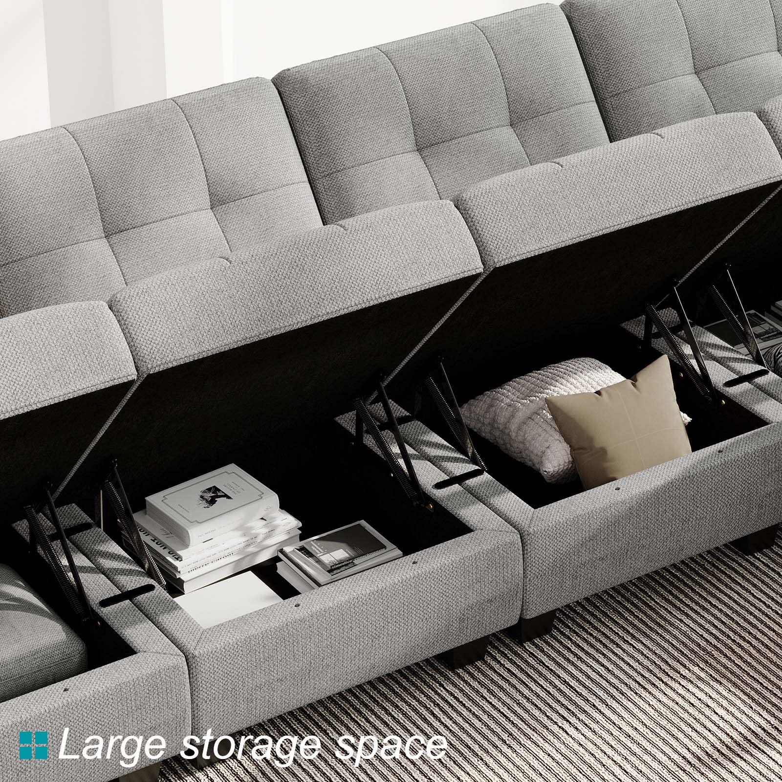 - Bonus Saving Space: Every seat of the modular-shaped sectional sofa has a hidden storage space, you can place magazines, toys, remote controls, pillows, etc. The storage seats can save a lot of space in your home.