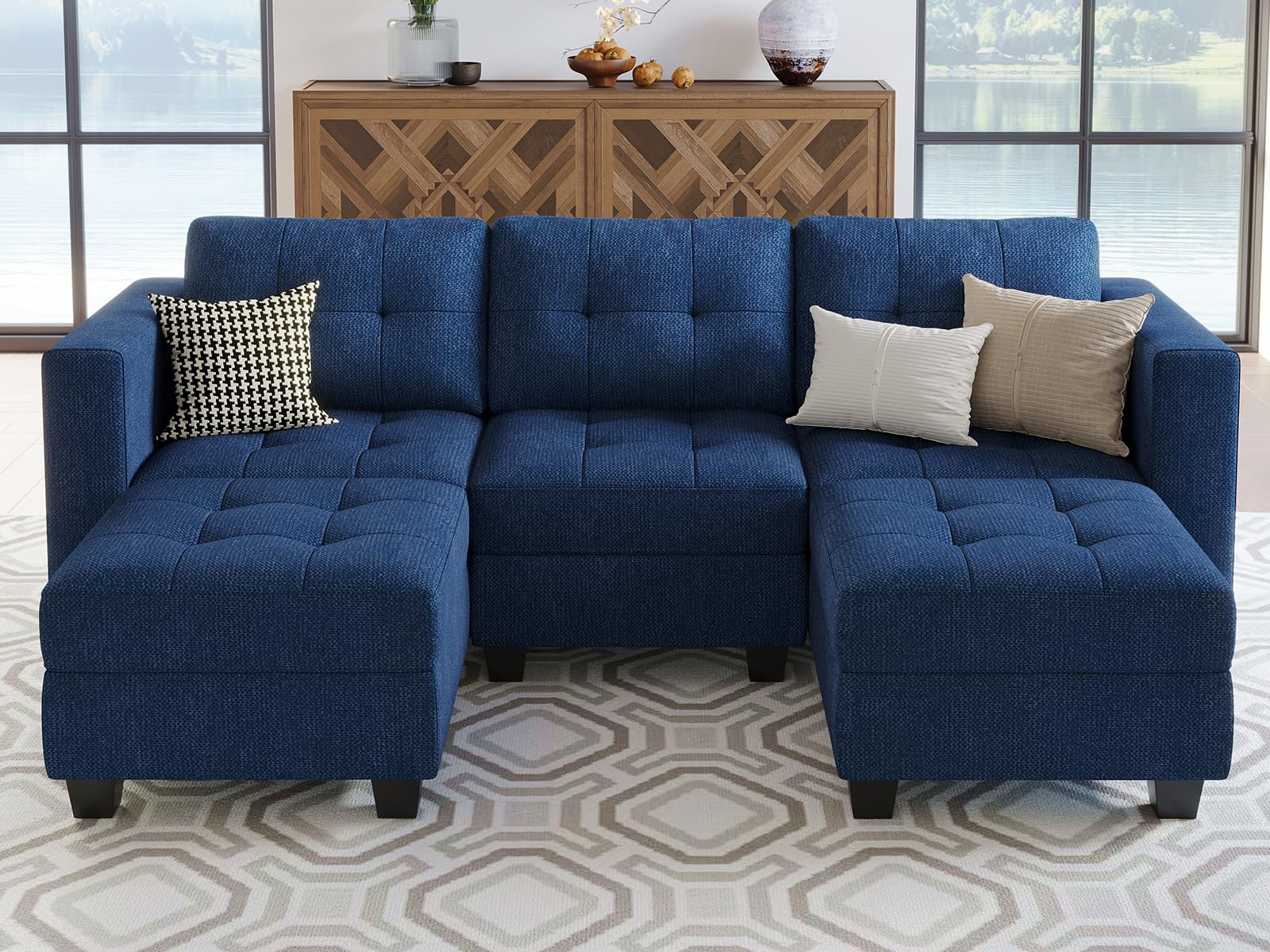 - Our modular u-shape sectional sofa couch is made with a sturdy solid wood frame ,filled with high-density sponge and wrapped in 100% plush woven fabric, designed for long and lasting use. And the foldable design of the backrest allows you to have a very comfortable sitting experience.