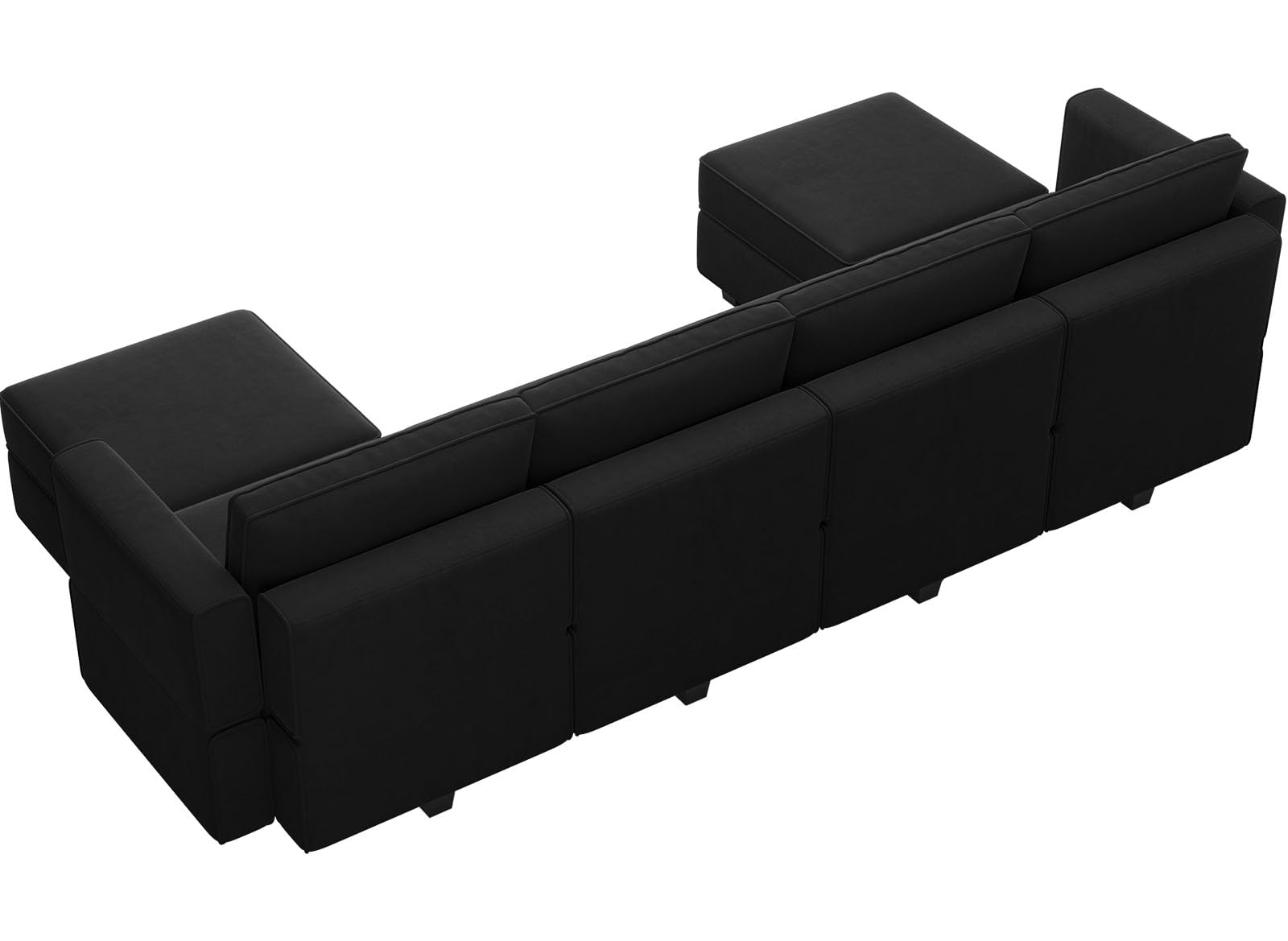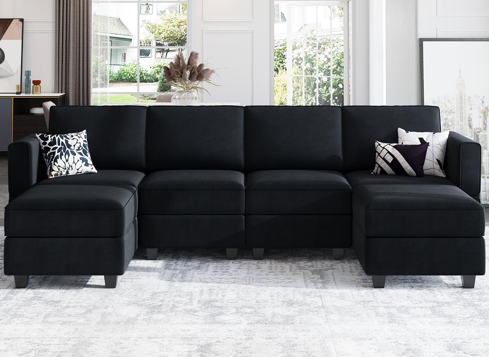 - Pet Friendly& Easy to clean: The pet's hair mostly sits on modular sectional sofa’s top so you can easily pick off the clumps or run a lint roller over it every few days to keep it clean. If your pet likes to claw the sofa, please don’t worry, the black velvet fabric is sturdy and just blends in really well so won't leave any marks.