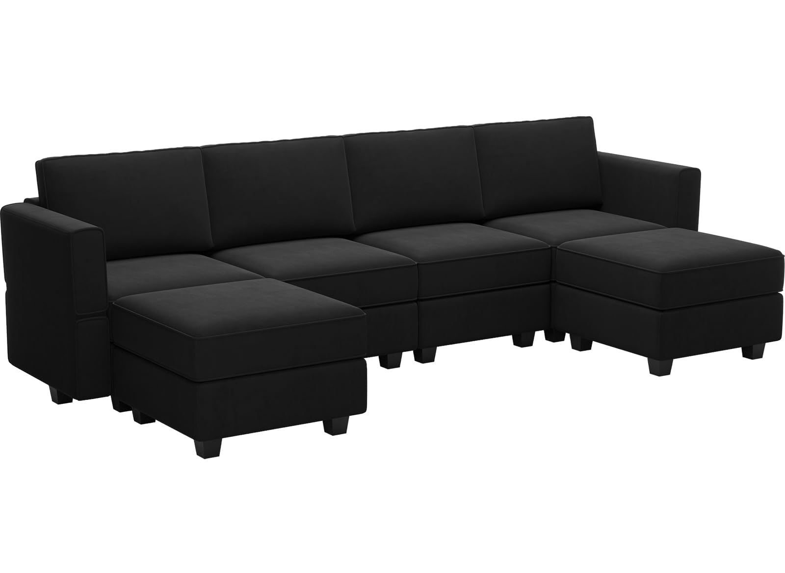 - Free Combination Design: The U-shaped sectional sofa is made up of a number of individual modules that can be arranged into various shapes, a cozy U shape sofa, space-saving L shape sofa or 4-seater sofa with double ottomans to suit any living space, large or small.
