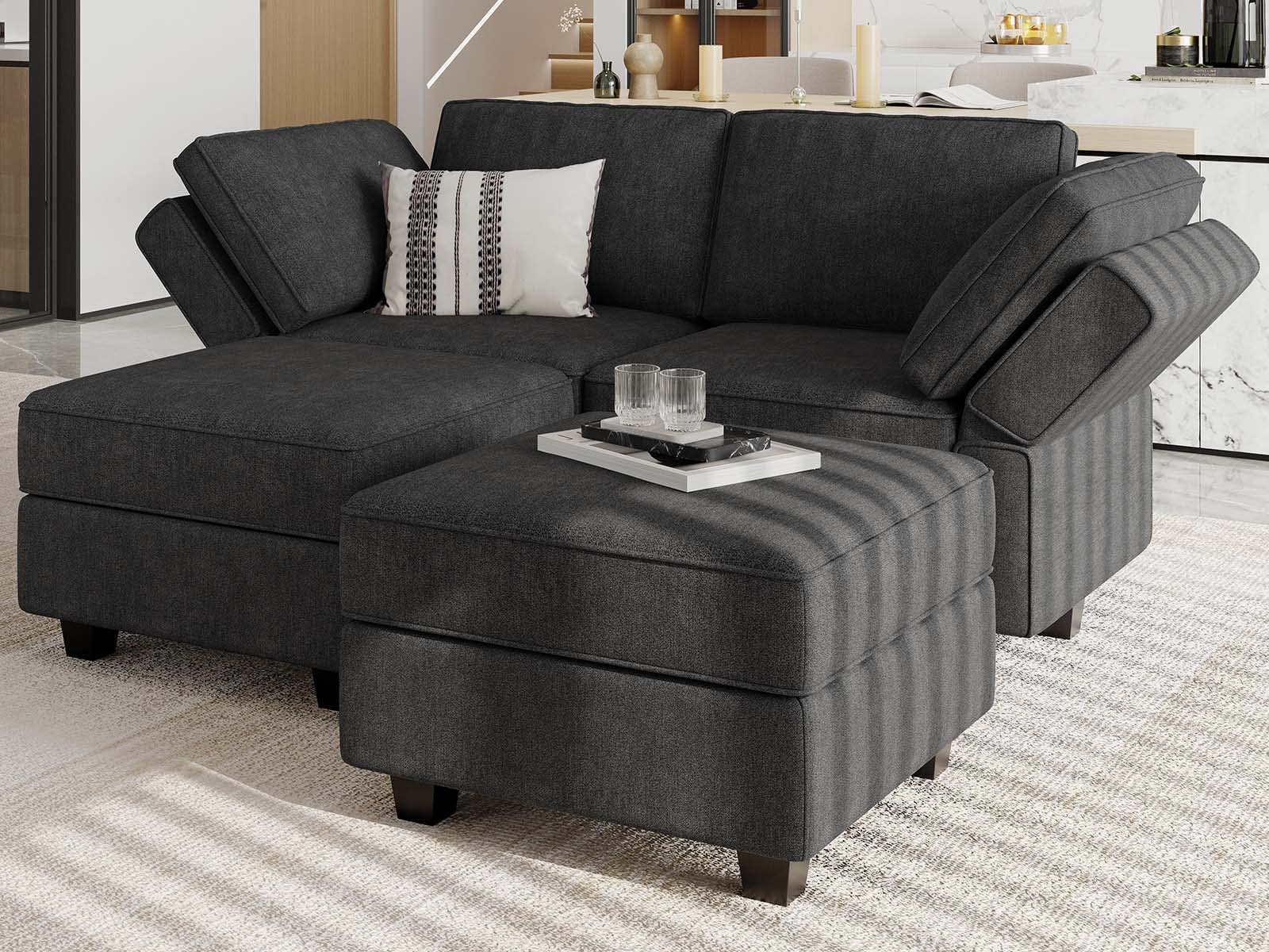 - Space Saving: Our large modular sectional sofa has bunch of storage space under, perfect for your pillows, throws, clothes and toys. Easy way to keep your home clean and tidy with our modular sleeper