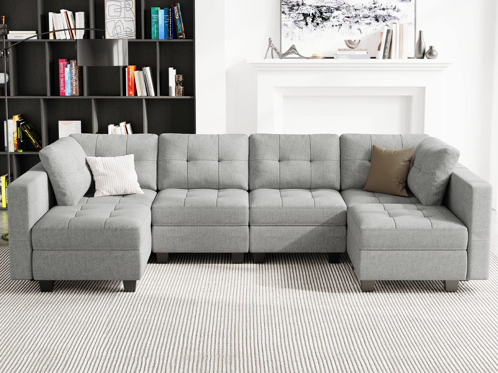- Hidden Bonus Storage Spaces: Every seat of the modular u shaped sectional sofa has a hidden storage space,Storage dimensions: 22.40"(L)*22.40"(W)*5.70"(H). You can place magazines,toy,remote control,pillows etc. The storage seats not only can makes your room tidy but also adds some practical function for your home.