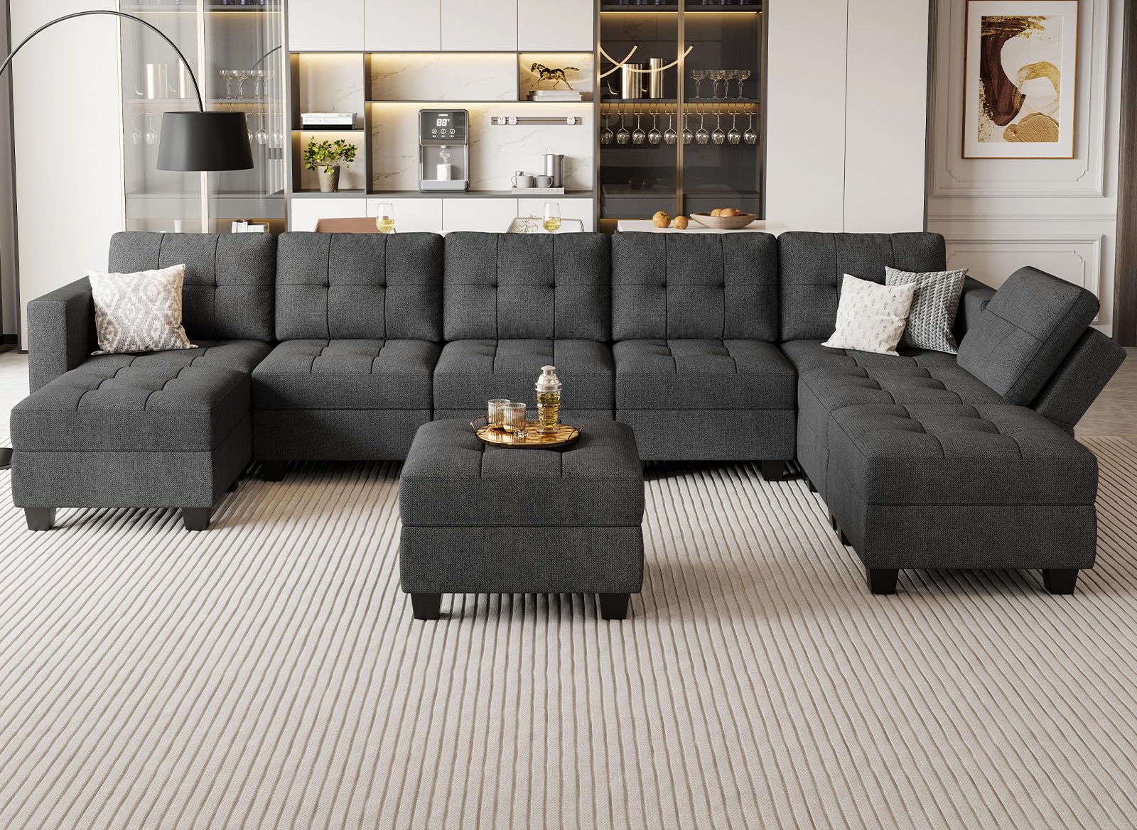 - Saving Space Design: Every seat of the modular u shaped sectional sofa set has huge hidden storage space,Storage dimensions: 22.40"(L)*22.40"(W)*5.70"(H). You can place magazines,toy,remote control,pillows etc. The storage seats not only can makes your room tidy but also adds some practical function for your home.