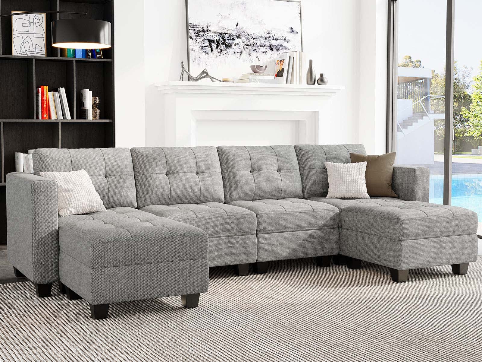 Reversible Storage Modular U-Shape Sectional Sofa Couch with Double Chaises Modular