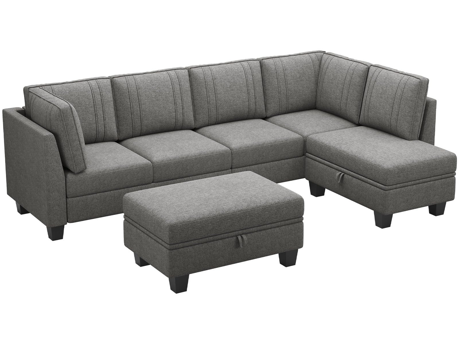 - EXQUISITE DESIGNED: L shaped sectional sofa chaise can be placed for left chaising or right chaising, you can just switch the chaise with connectors to the other side and also has ample storage space as an ottoman. You can easily storage your pillows, throws and toys under