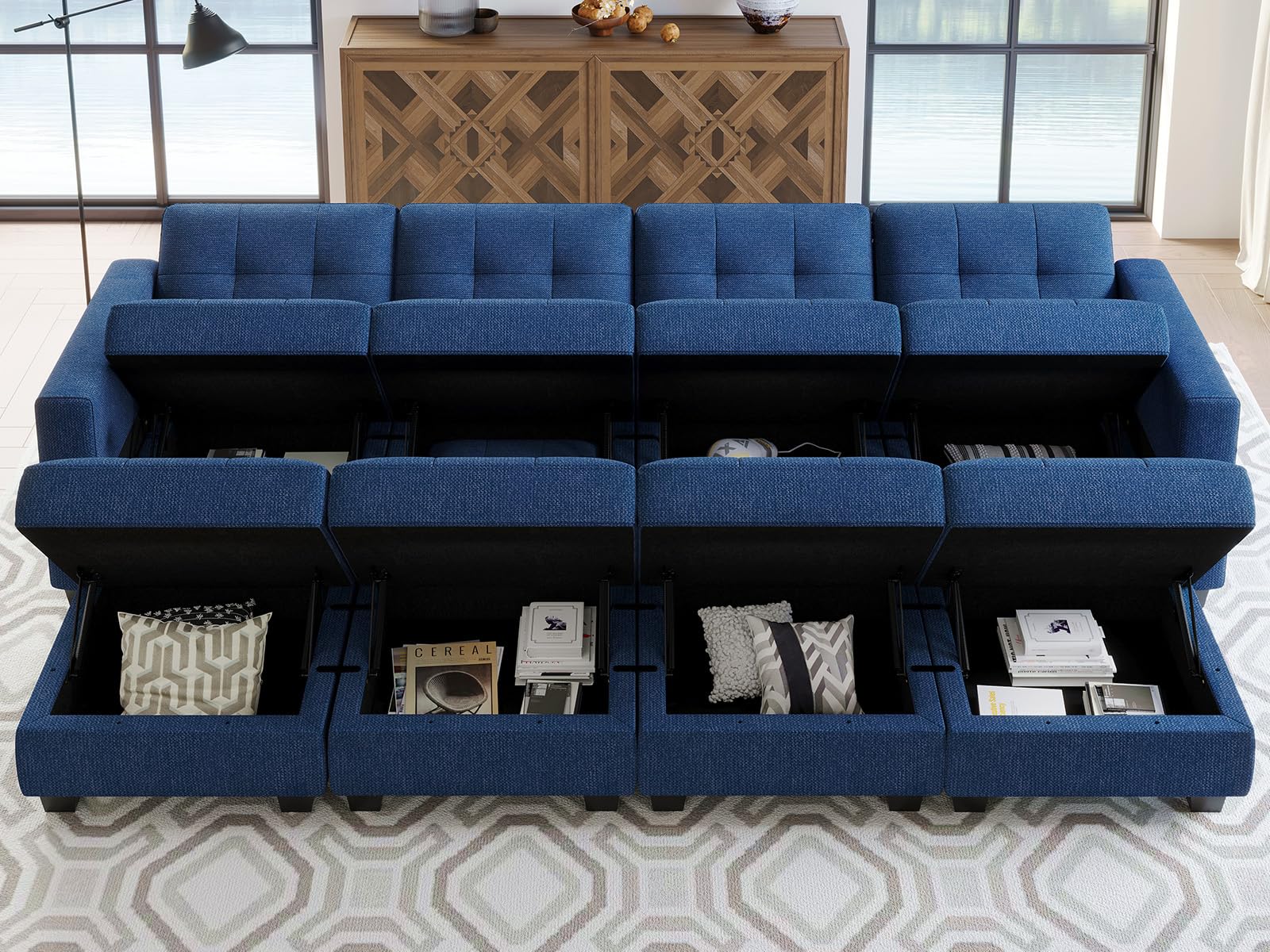 - Storage Seat Design Every seat of the modular sectional sleeper sofa has a hidden storage space,Storage dimensions: 22.40''(L)*22.40''(W)"*5.70"(H). You can place magazines,toy,remote control,pillows etc. The storage seats not only can makes your room tidy but also adds some practical function for your home.