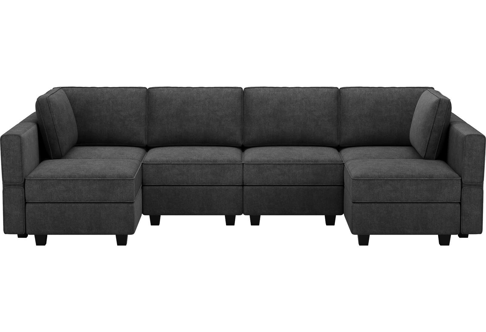 - Space Expanded: Under every Middle and Ottoman of our modular couch there are ample storage space for your family. That means one Middle/Ottoman equals one storage box. You can keep some toys and some throws in the sectional sofa when you don't need them