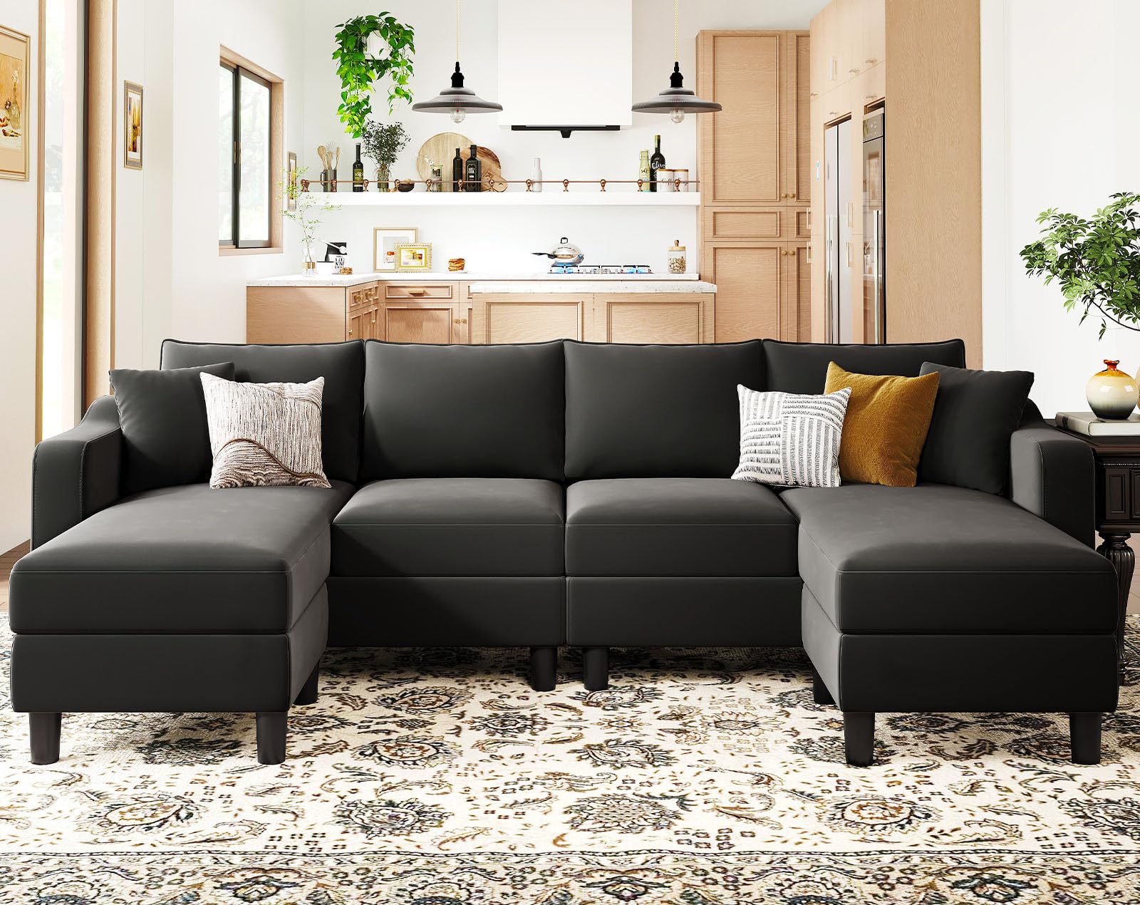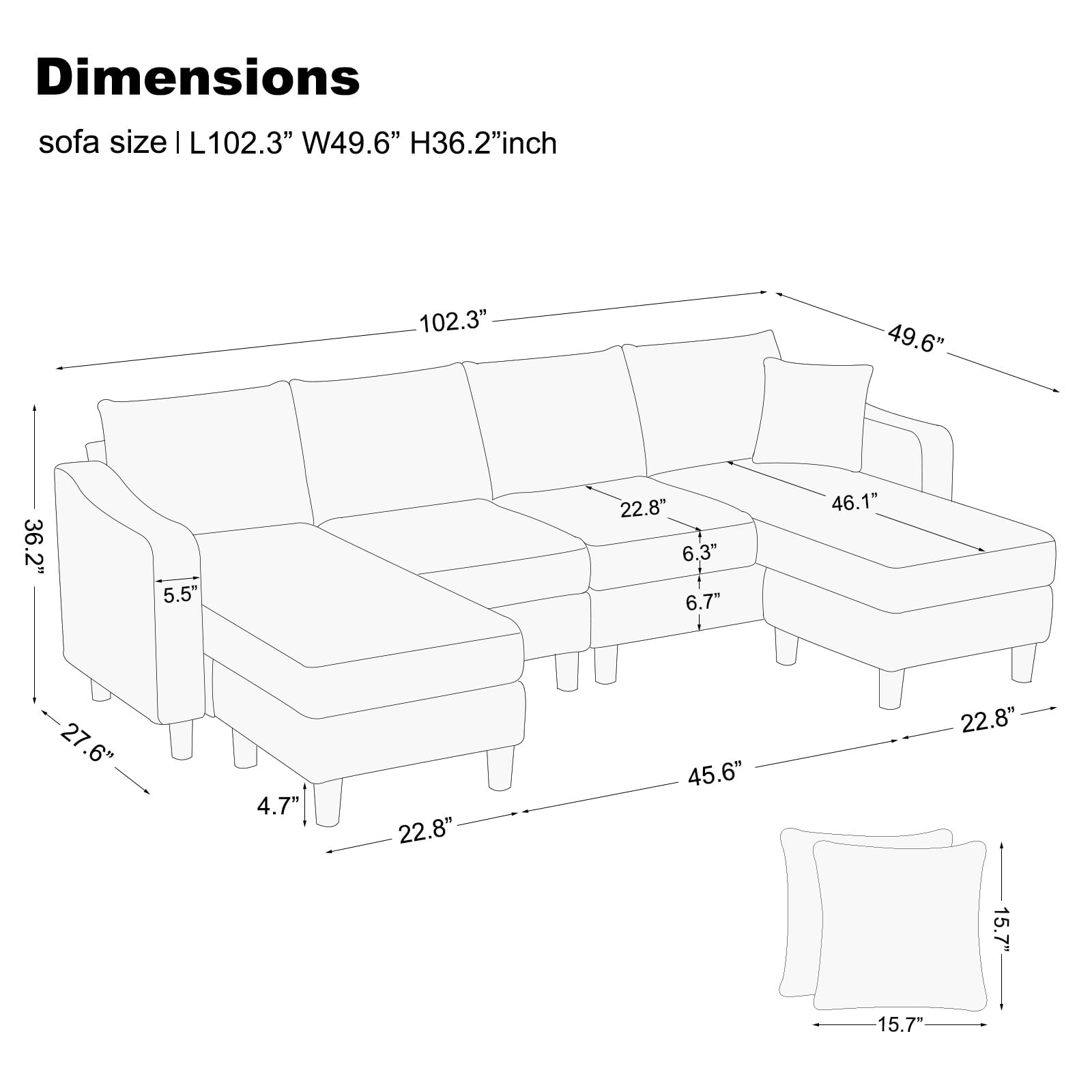 - Easy to Assemble: The U shape sectional sofa needs to be assembled. No tools needed and easy to follow instructions to assemble. Overall sofa size:102.3”(W)*49.6”(L)*36.2”(H).The U shaped couch comes in 3 packages that may arrive separately within different days.