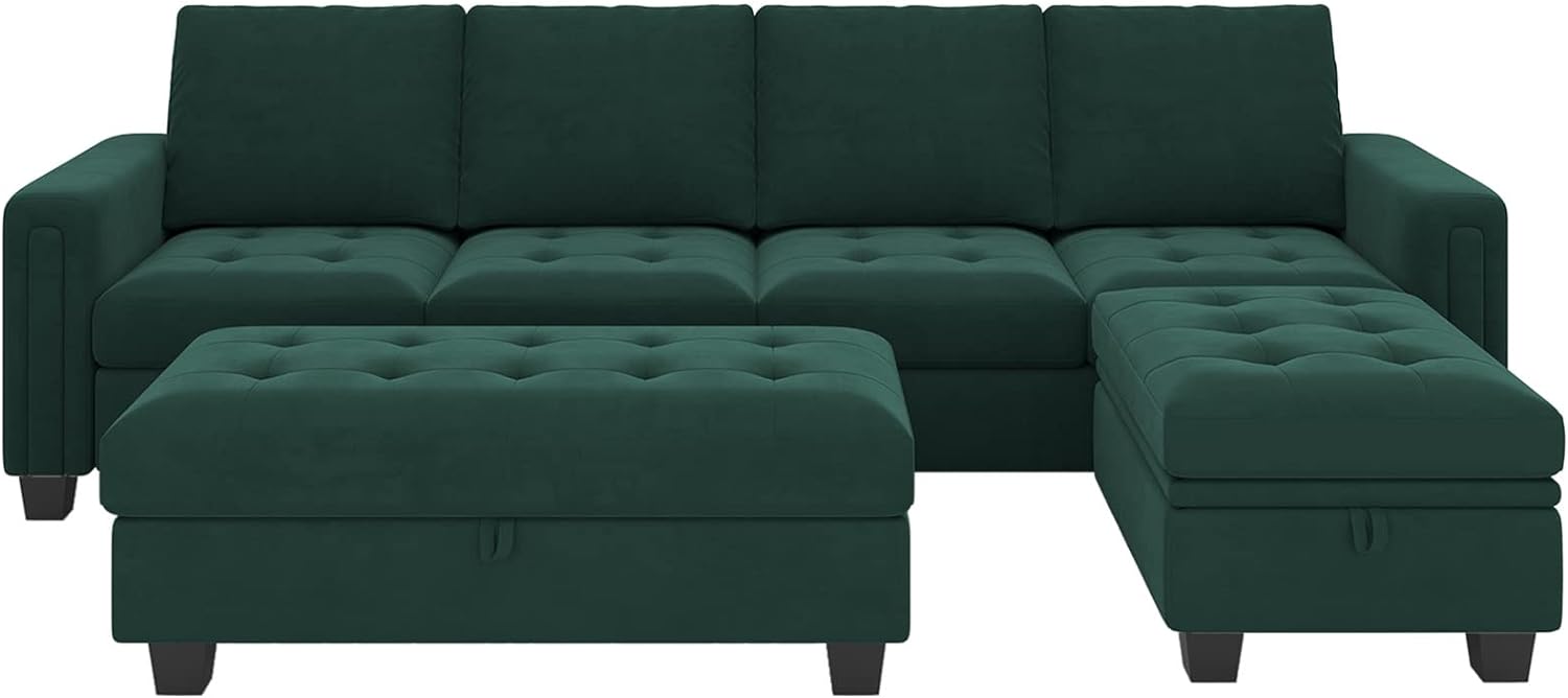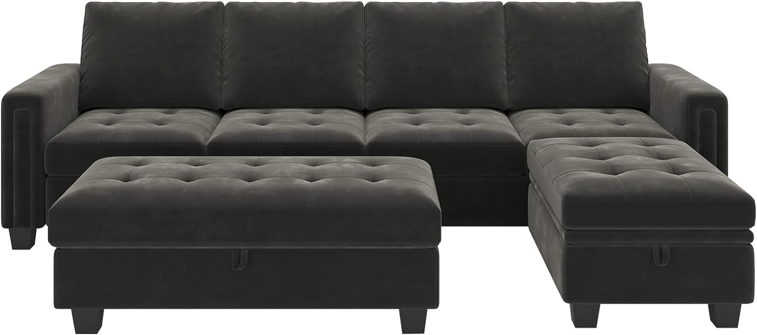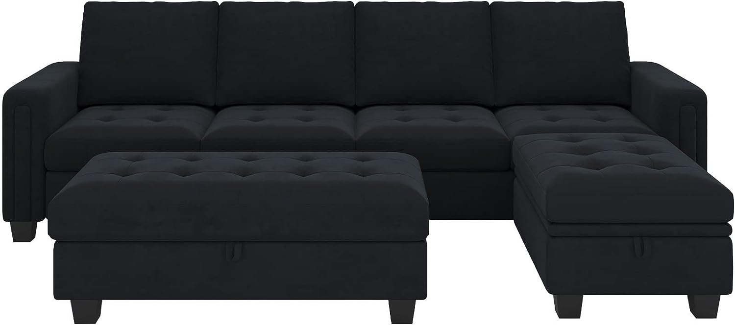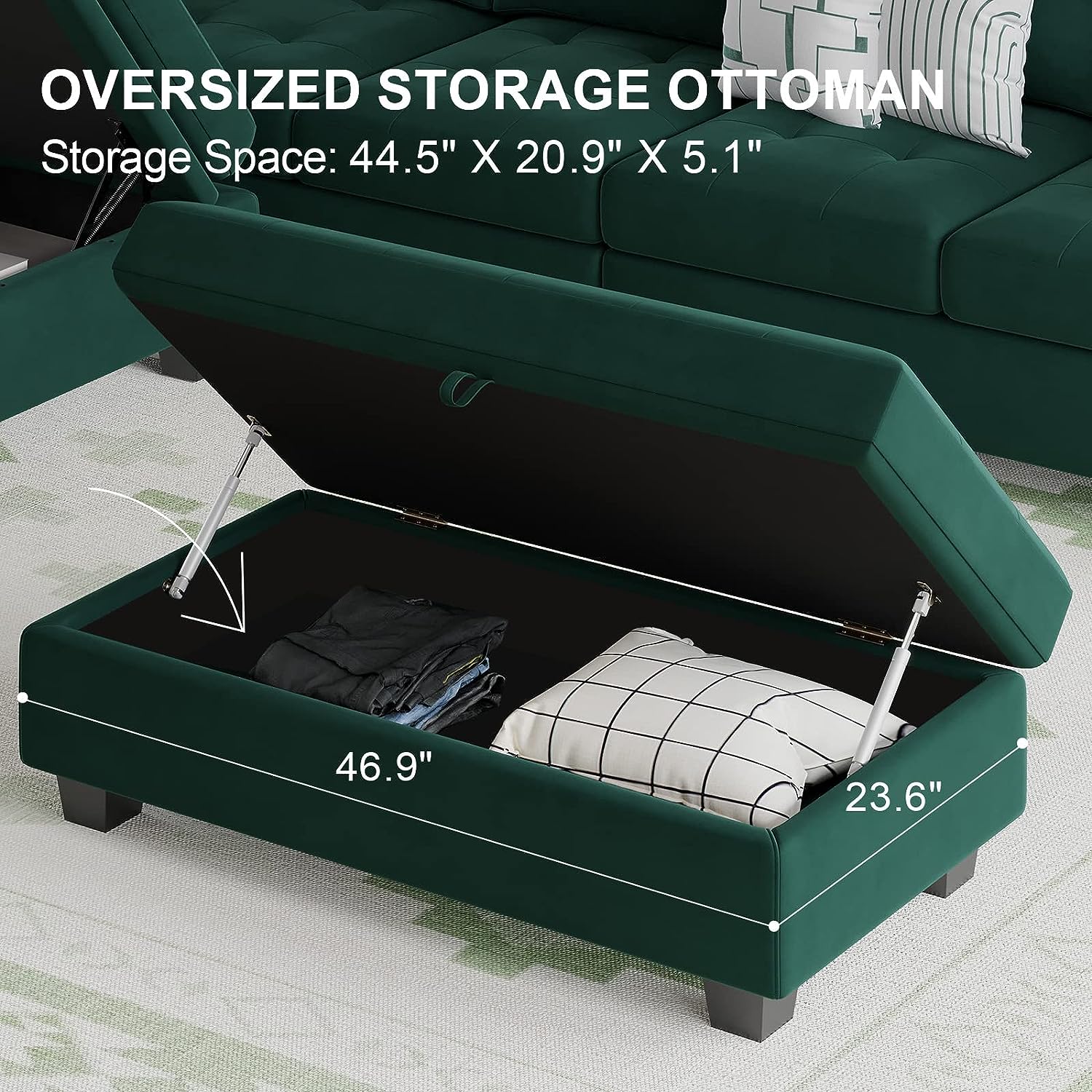 - Space saving storage ottoman:This sectional sofa set contains a large ottoman and a small ottoman.Both ottomans have built-in storage space,you can place magazines,toy, remote control,pillows etc,saving space for your room.