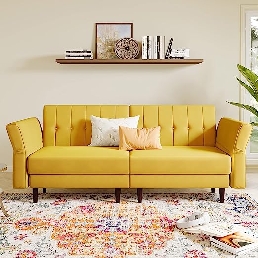 - Memory Foam : Specially designed memory foam for the futon couch, the foam is high resilience, the foam cushion of upholstered futon sofa bed is soft and resilient. make sure you can sit on the futon sofa bed or lie on the futon sofa bed comfortably.