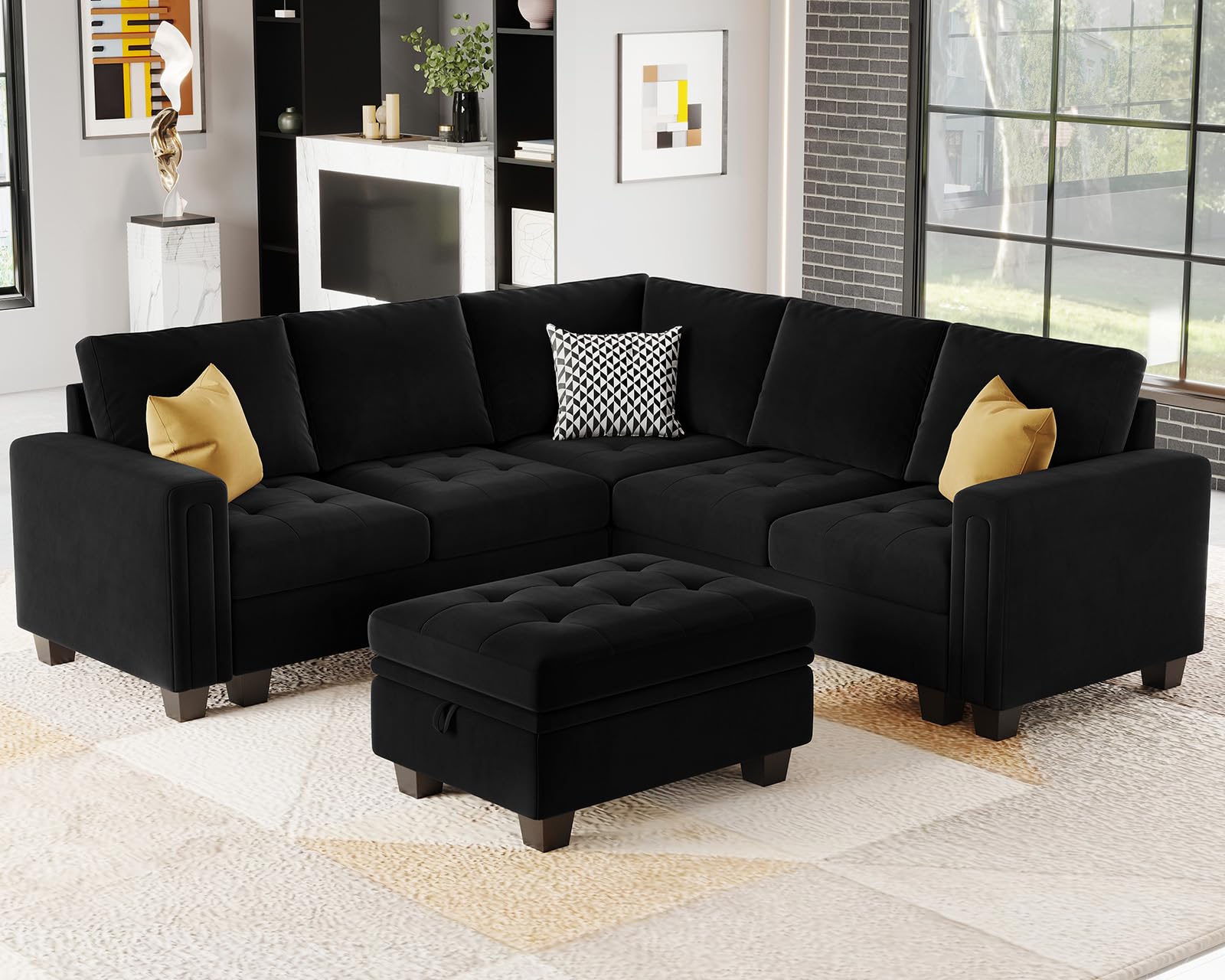 - Comfortable & Sturdy Sturdy solid wood frame, filled with high-quality sponge and comfy velvet fabric, making the modular velvet l shape sectional sofa keep comfy and soft but firm so won't lose shape easily for a long time.