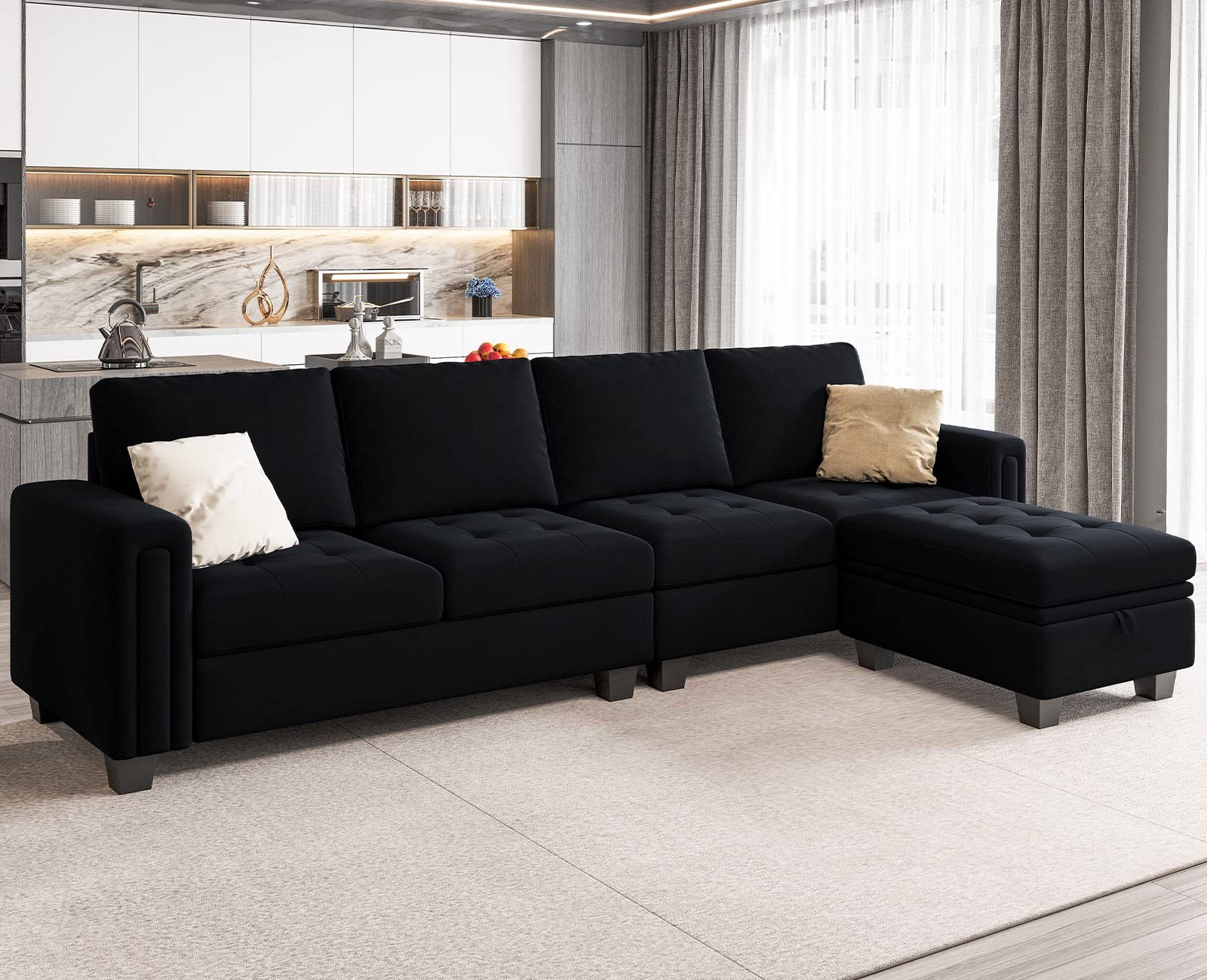 - MOVABLE STORAGE OTTOMAN: The ottoman of this sectional couch can be moved freely, not only as a chaise of the sofa, but also as a footrest or a coffee table to meet the various living needs of different families.And the ottoman also has storage function, you can place magazines,toy,remote control,pillows etc,saving space for your room.