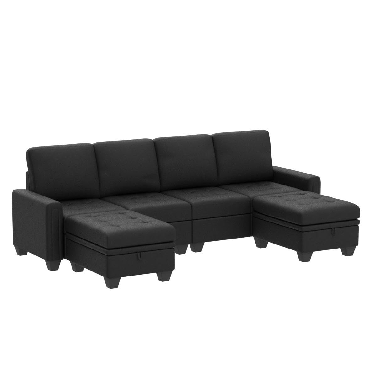 - Dimensions: Overall dimensions of U shaped sectional couch is 106.7"(W) x 62.2"(D) x 35.8"(H). Dimensions of single storage ottoman is 23.6"(W) x 32.3"(D) x18.5"(H). Space saving and durable.