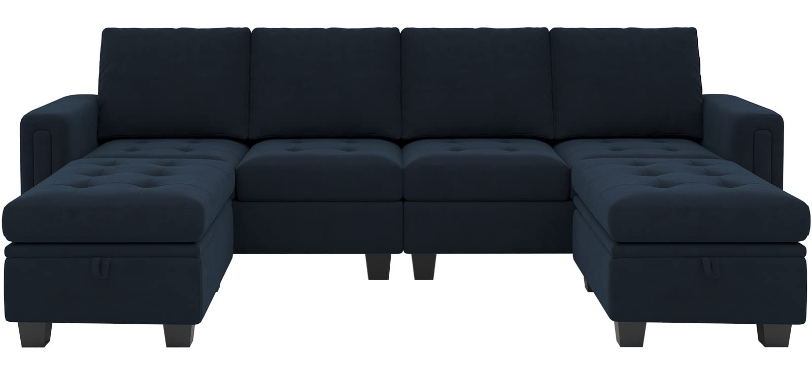- Dimensions: Overall dimensions of U shaped sectional couch is 106.7"(W) x 62.2"(D) x 35.8"(H). Dimensions of single storage ottoman is 23.6"(W) x 32.3"(D) x18.5"(H). Space saving and durable.