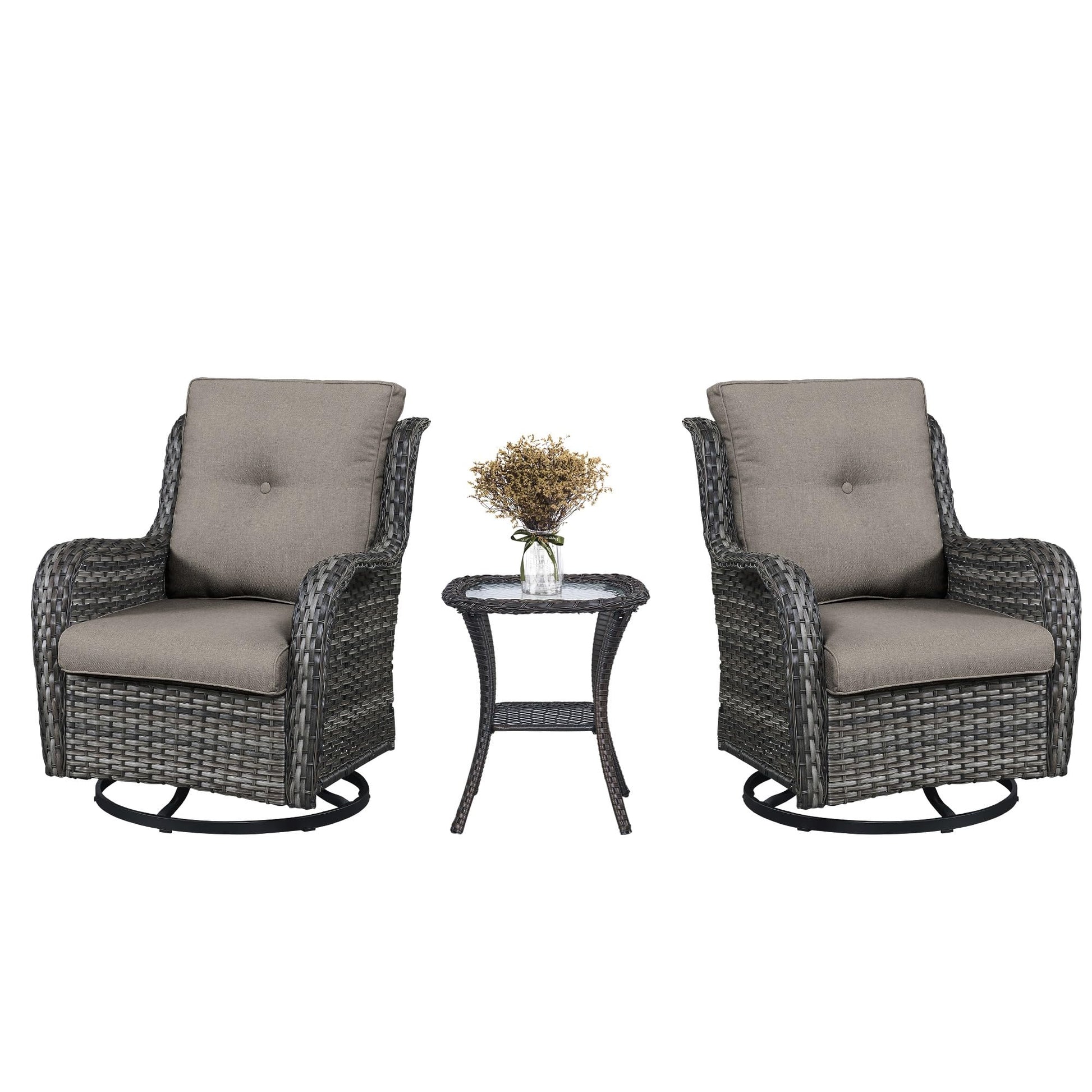 3 PCS Patio Furniture Set - Mixed Grey Wicker Swivel Rocking Chair Set with Side Table