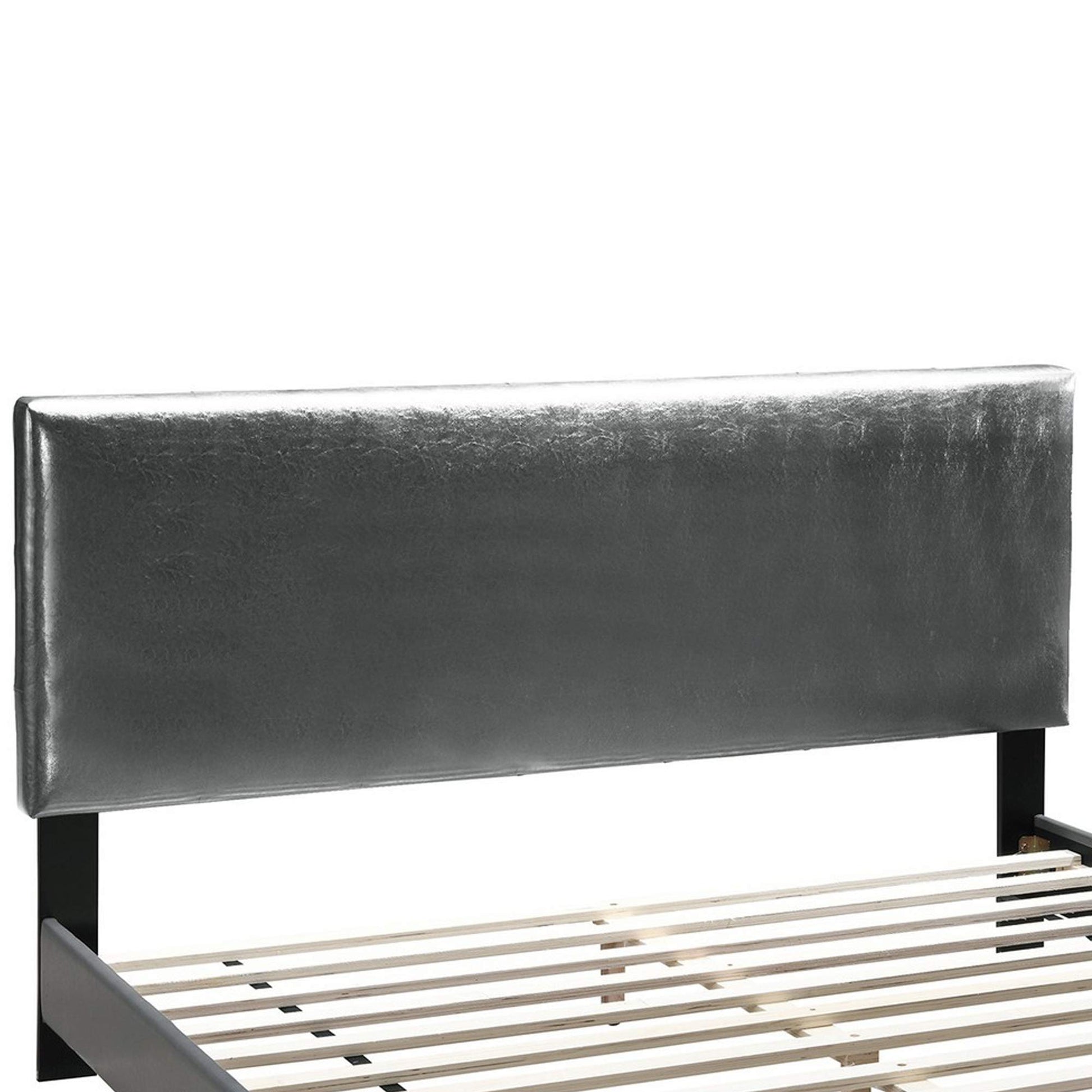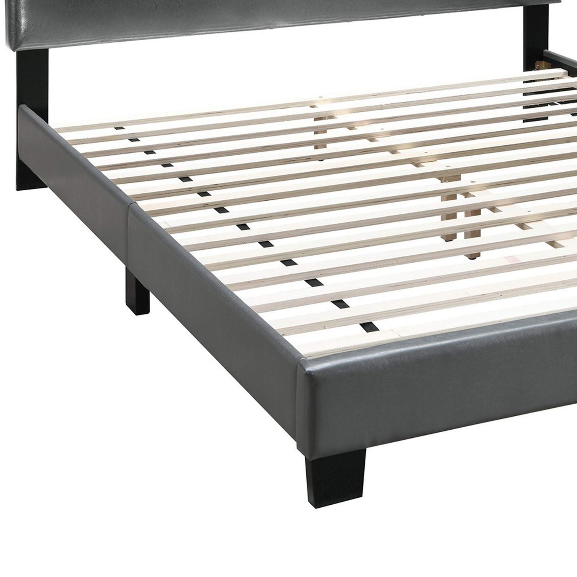 Queen Leatherette Bed with Checkered Tufted Headboard