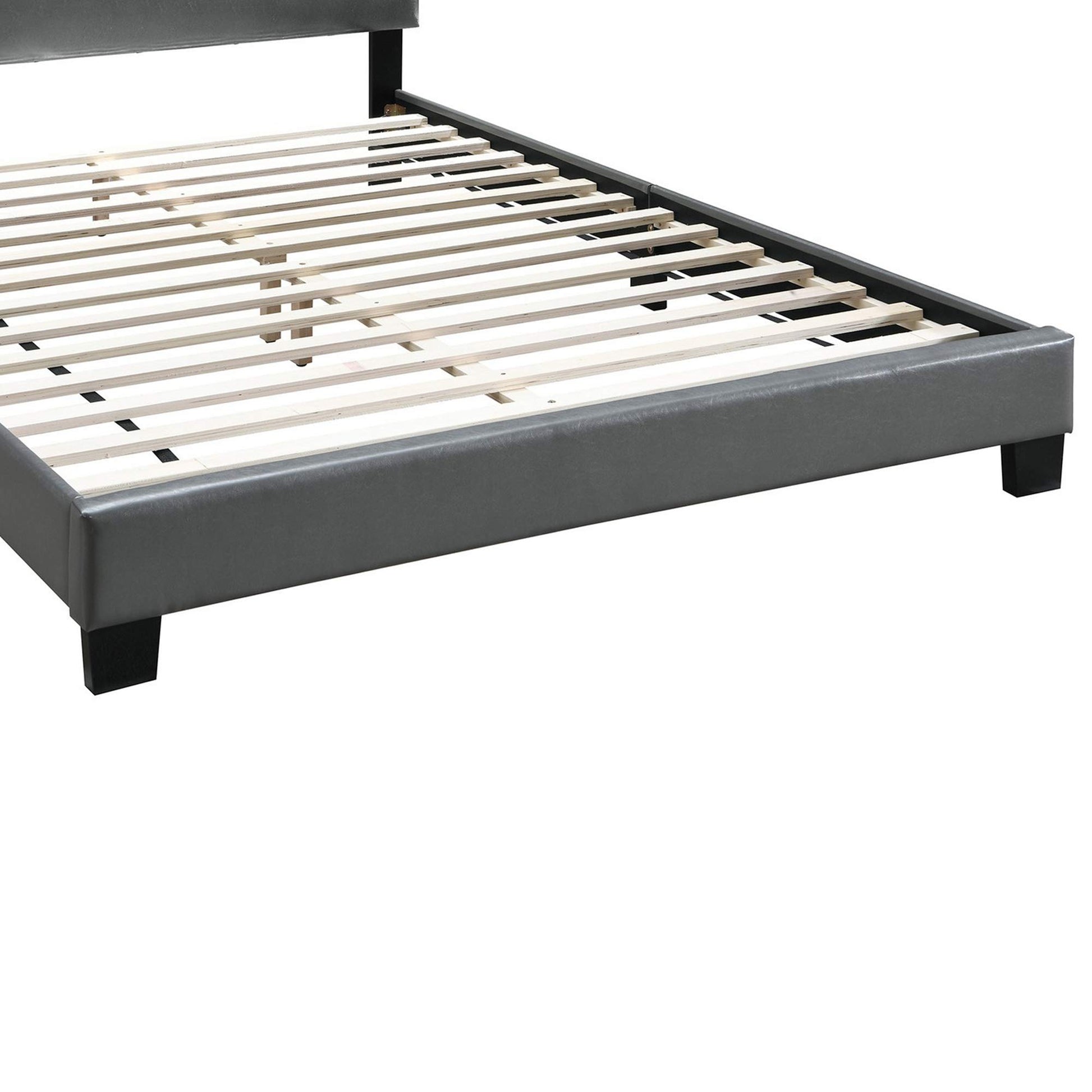 - Upholstered in gray faux leather