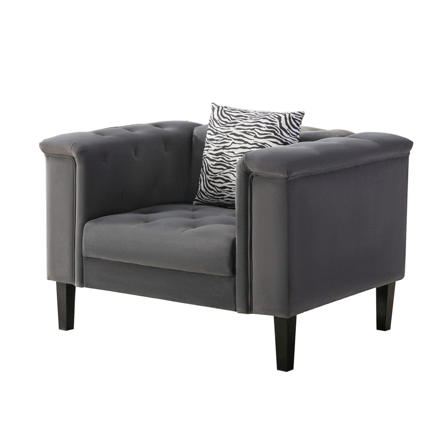44 in. AKI Accent Chair with Pillow, Deep Button Tufted, Gray