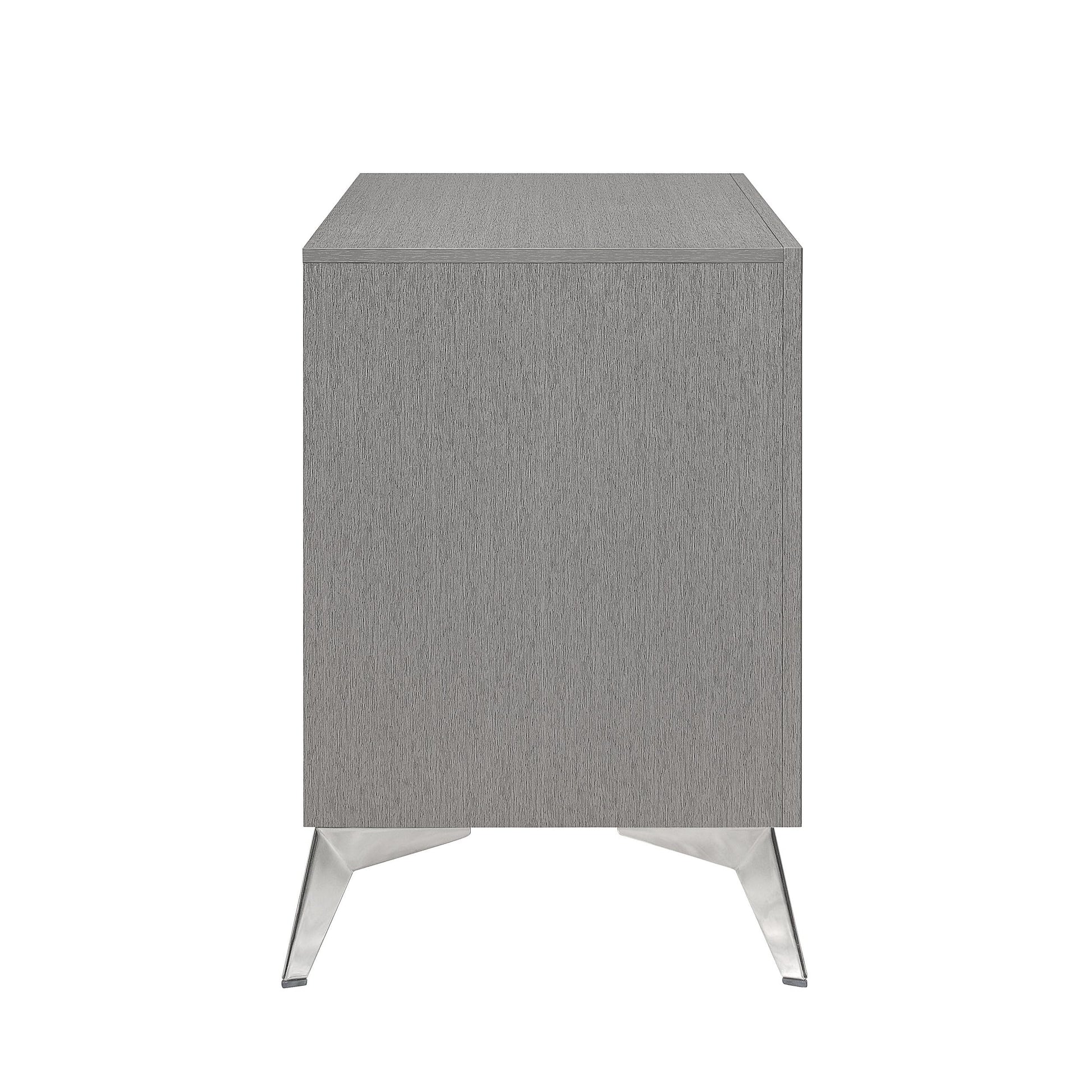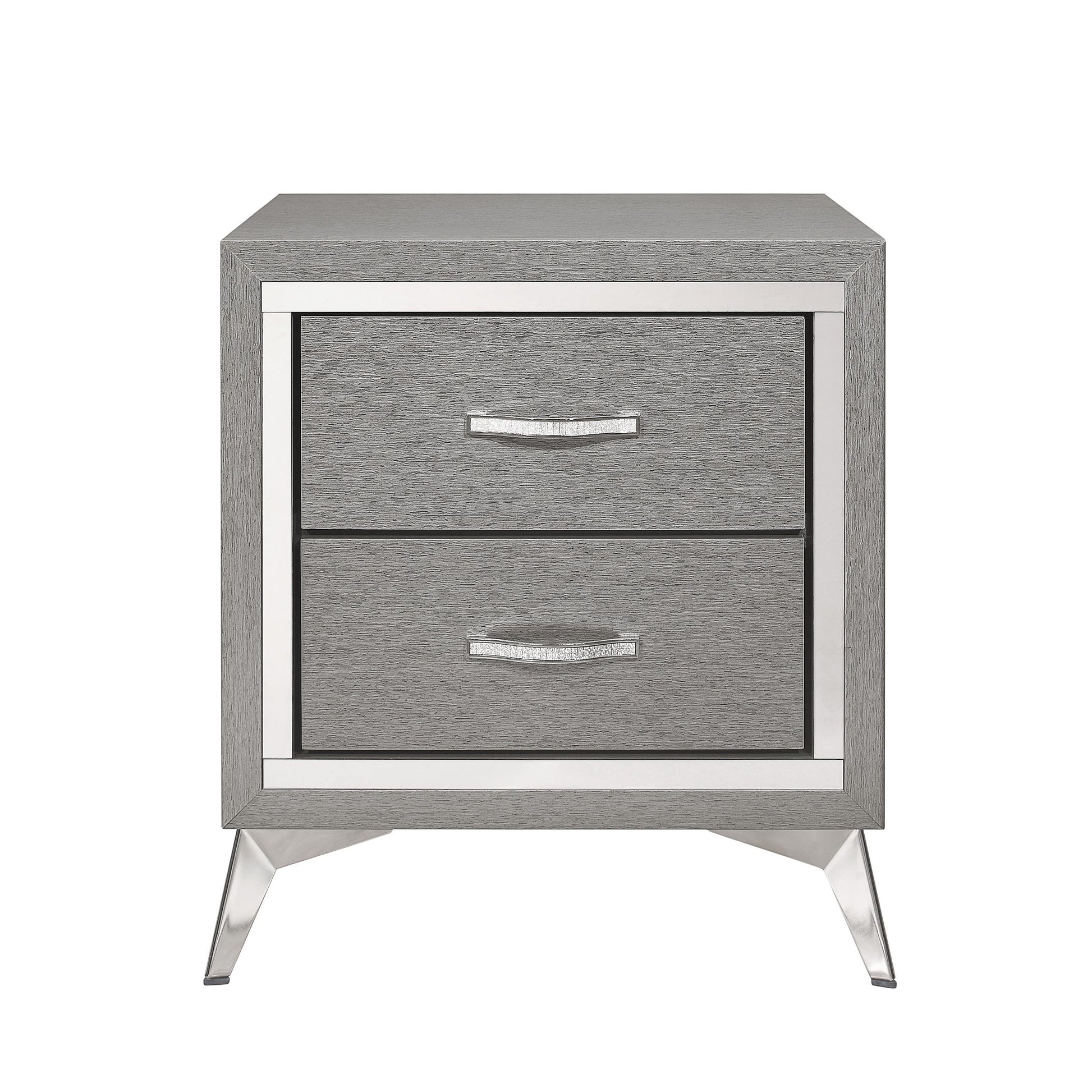2 Drawer Embossed Smooth Gray Wood & Silver Trim Nightstand