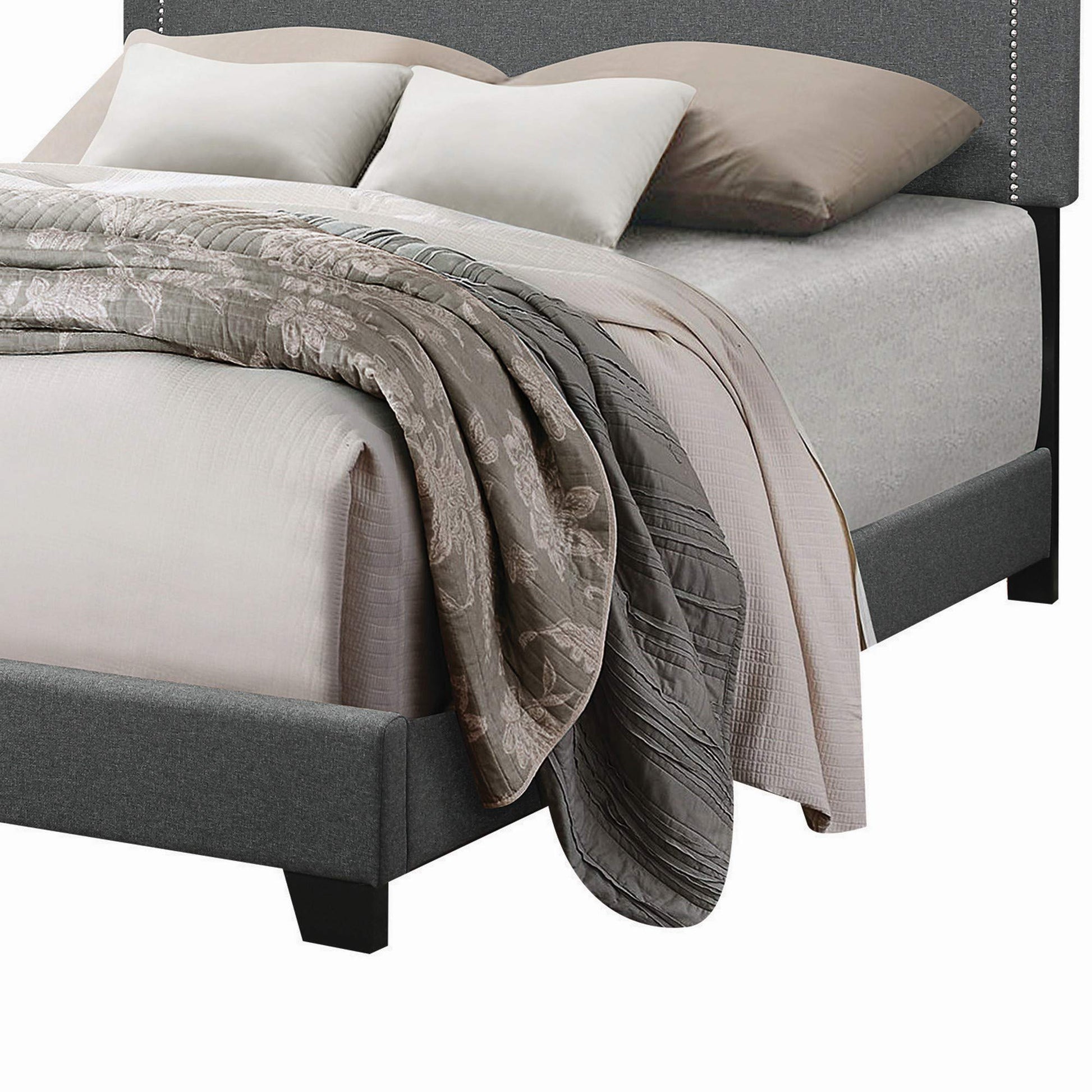Benjara Fabric Upholstered Queen Bed with Block Legs, Gray, Brown